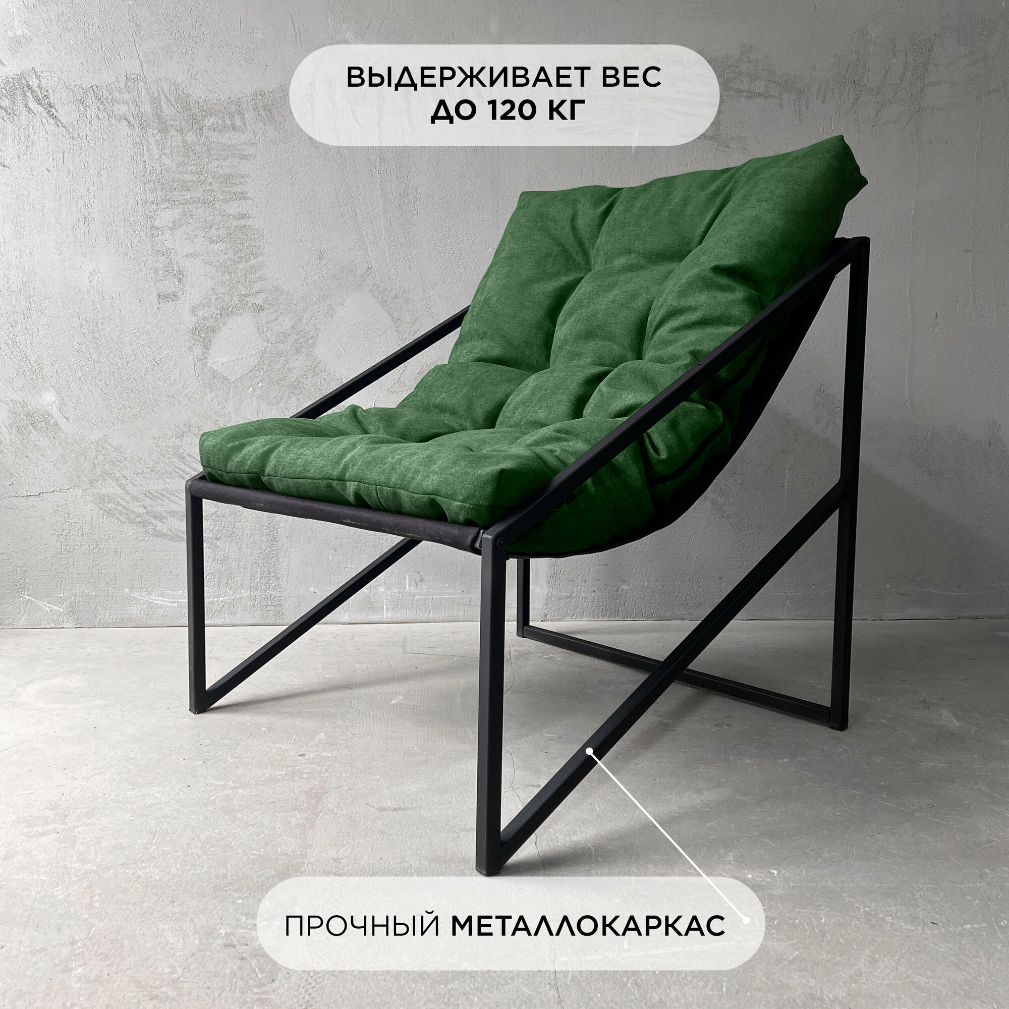 Купить Кресло лофт для дома "Лофтовик+ Слэш Green" велюр