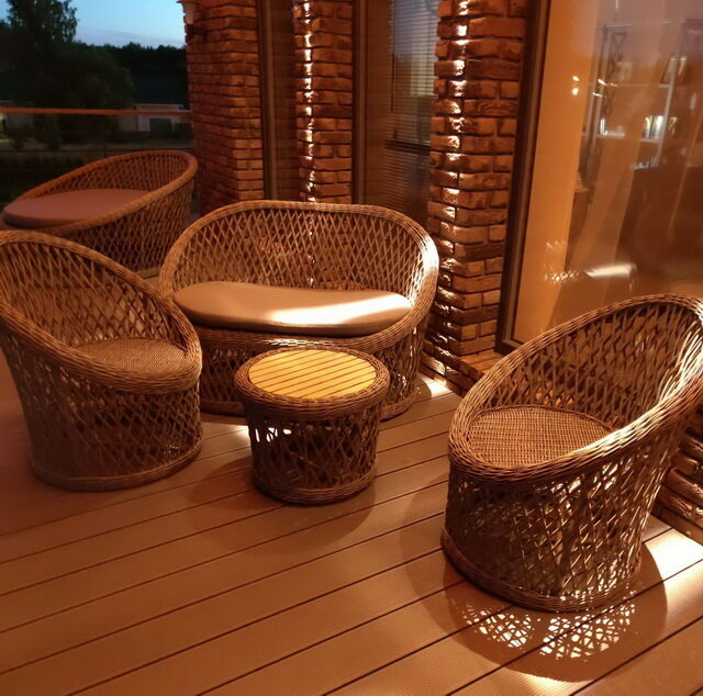 | Комплектация | плетеный диван, 2 плетеных кресла, столик, мягкие сидения |