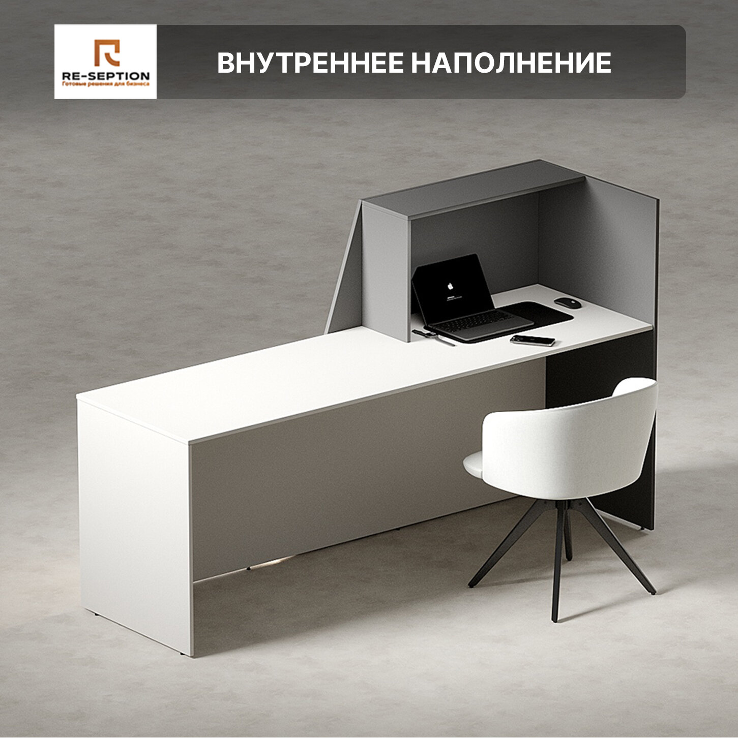 СохранитьСтойка ресепшен Спейс Серый Шифер - Белый, 2000х1200х600 Подсветка интересное:
