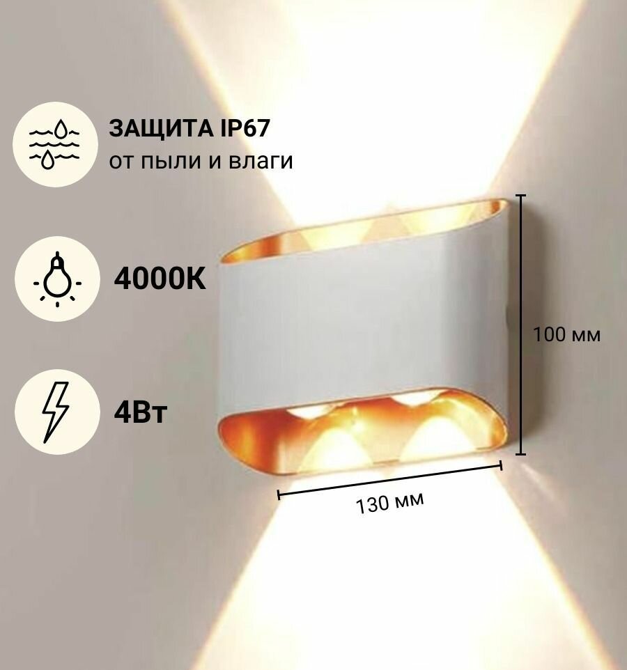 Светильник настенный Верх/Низ 2 лампы IP65 Нейтральный свет Белый с Золотым интересное: