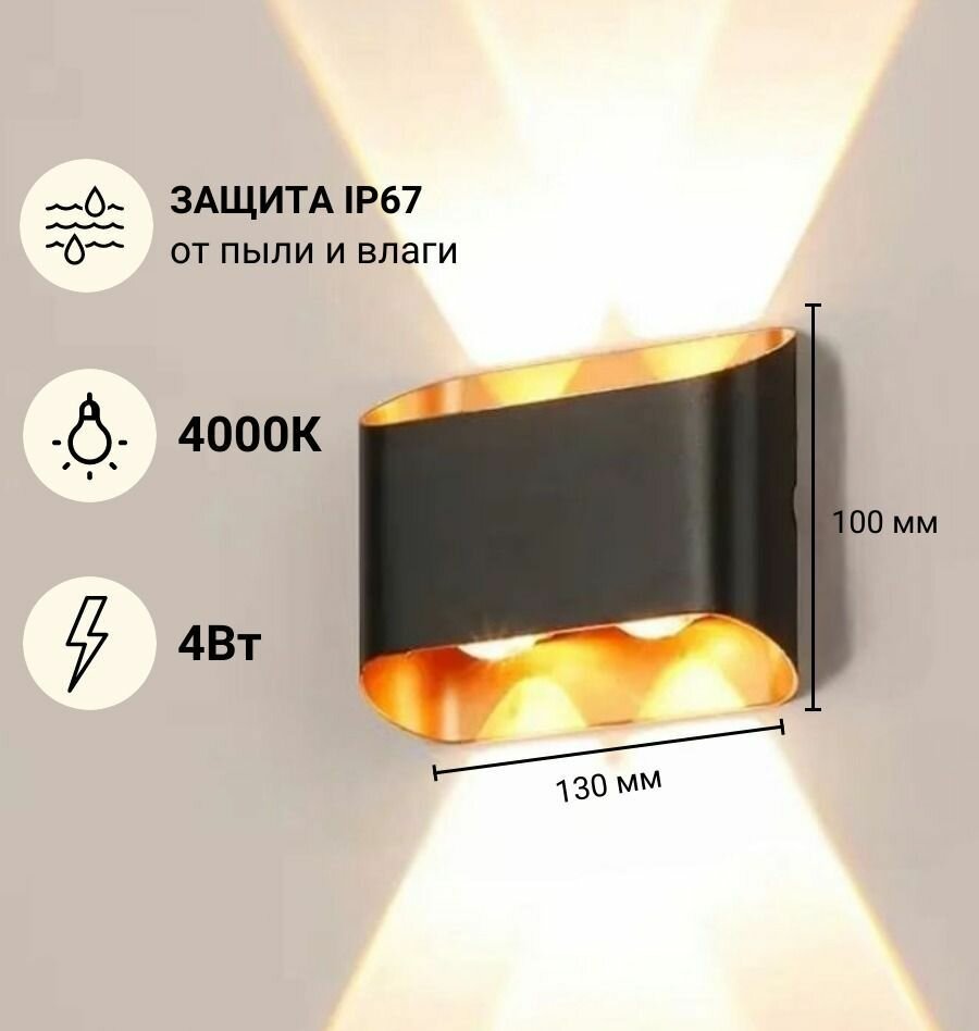 Светильник настенный Верх/Низ 2 лампы IP65 Нейтральный свет Черный с Золотым интересное: