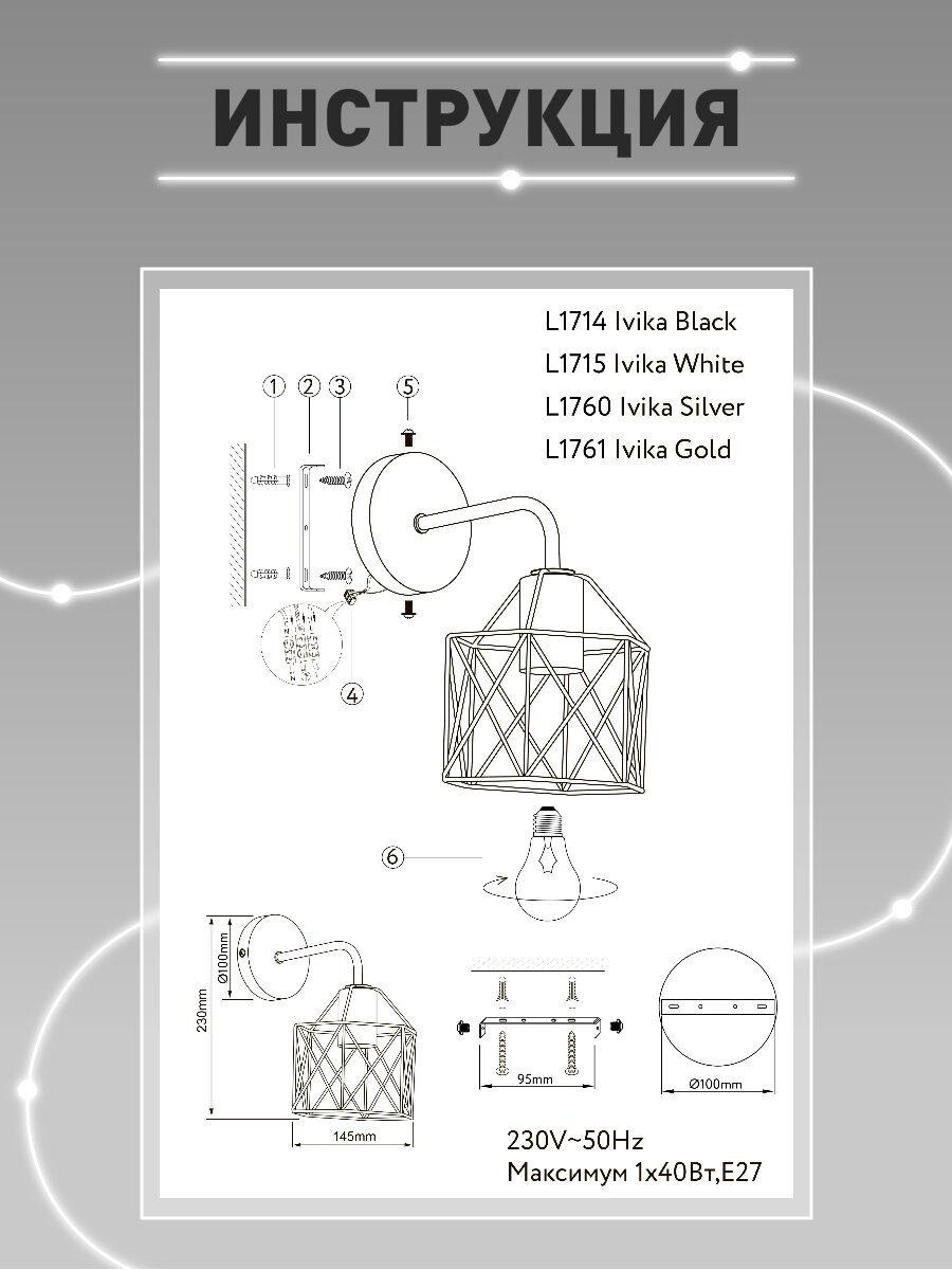 Бра Lamplandia L1714 IVIKA BLACK, E27*1 макс 40Вт интересное: