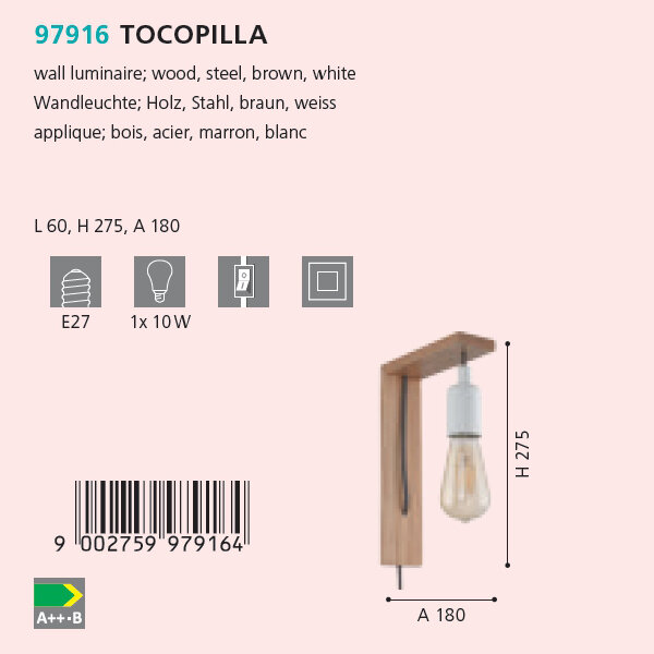 Ниже Вы можете прочитать отзывы на Настенное бра Eglo Tocopilla 97916, E27, кол-во ламп:1шт., Дерево, ознакомится с подробными характеристиками, посмотреть интересные обзоры и фотографии на Настенное бра Eglo Tocopilla 97916, E27, кол-во ламп:1шт., Дерево.
