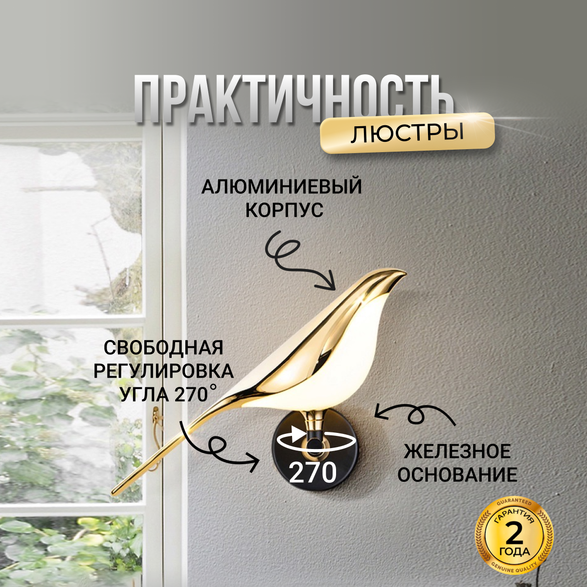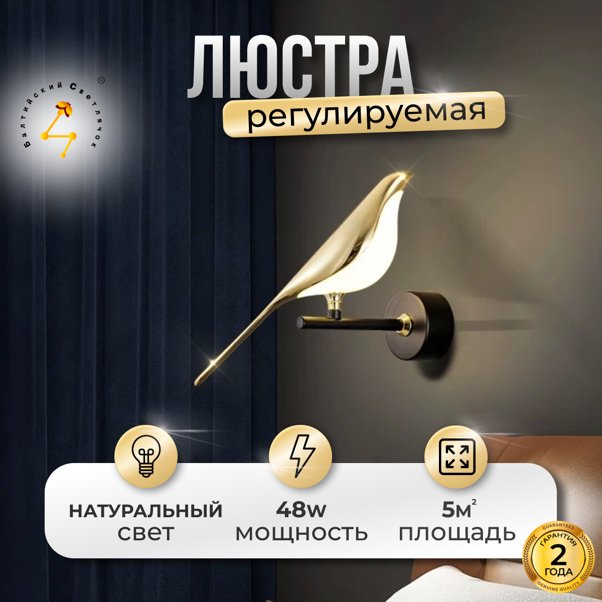 Настенный светильник Балтийский Светлячок "Птица", теплый свет интересное: