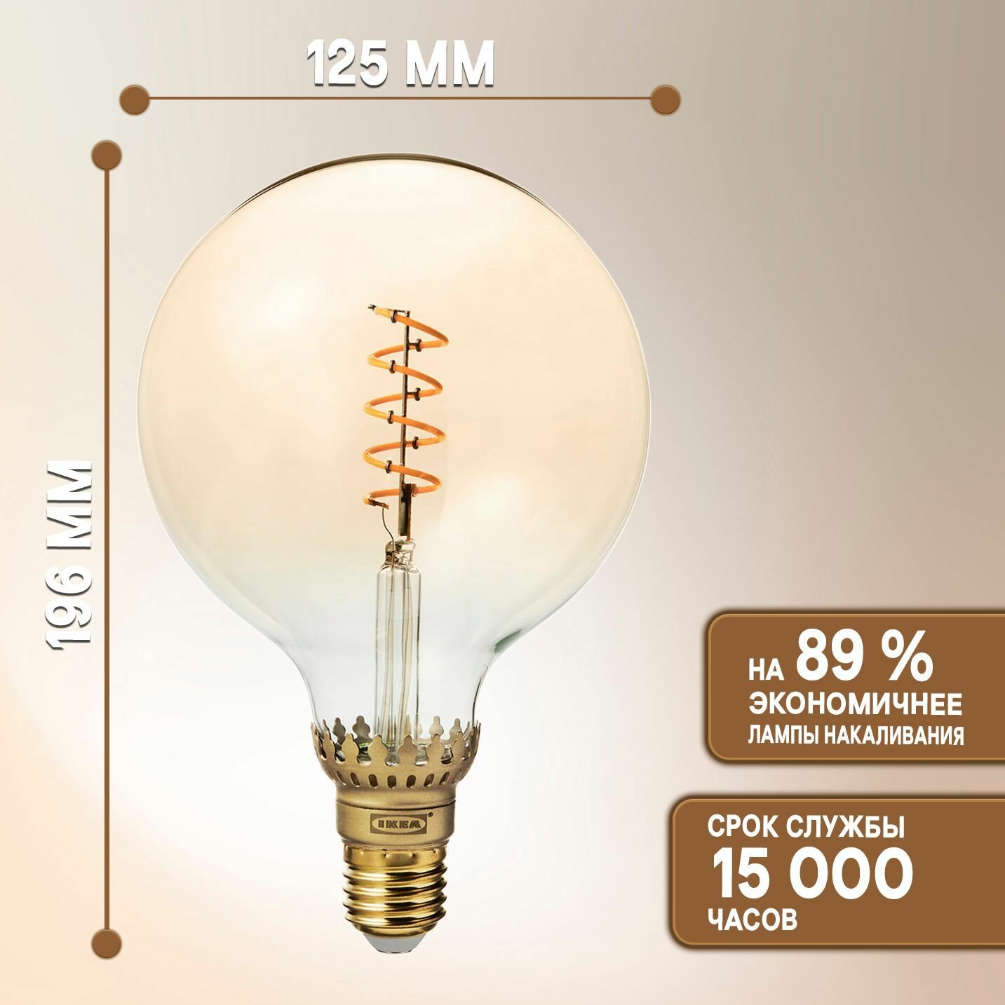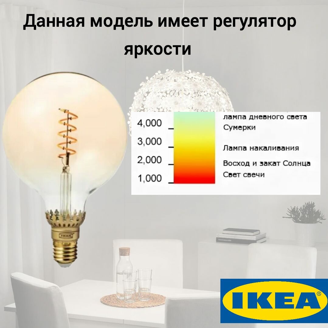 ROLLSBO ролльсбу светодиодная лампочка E27 140 лм 125 мм регулируемая яркость/шаровидный коричневый, прозрачное стекло интересное: