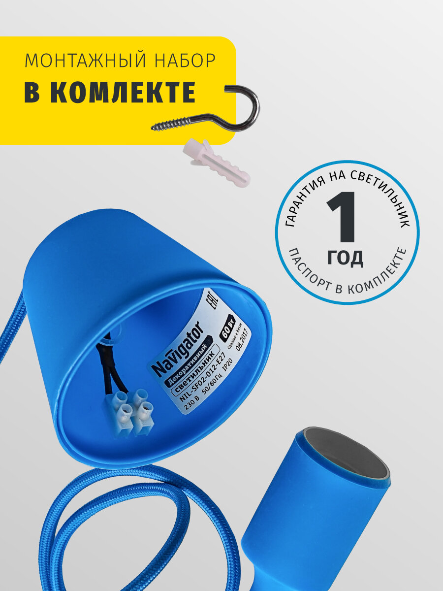 СохранитьПотолочный светильник Navigator 61 525 NIL-SF02 шнур с патроном, цоколь Е27, синий интересное: