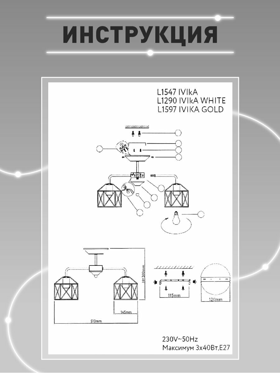 Люстра потолочная Lamplandia L1547 IVIKA, E27*3 макс 40Вт