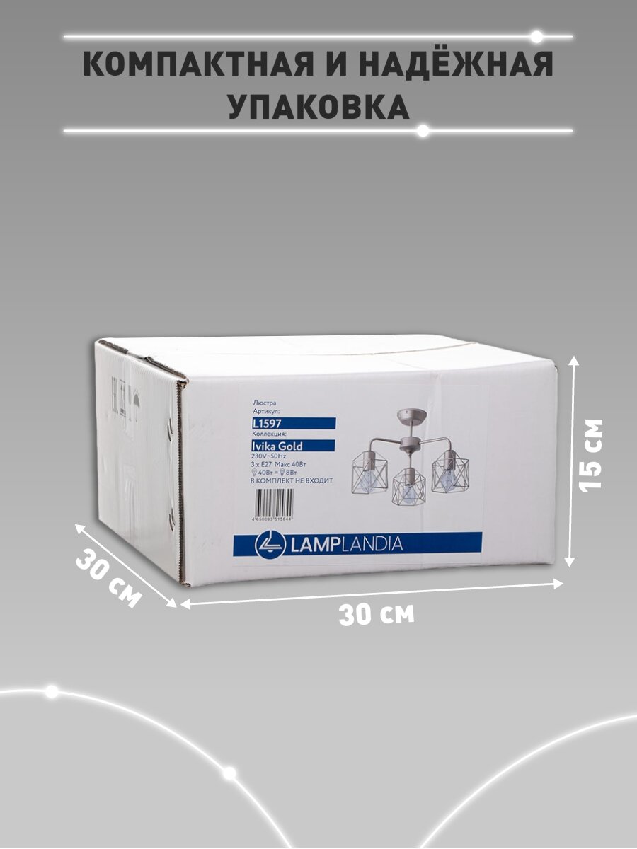 Люстра потолочная Lamplandia L1597 IVIKA GOLD, E27*3 макс 40Вт интересное: