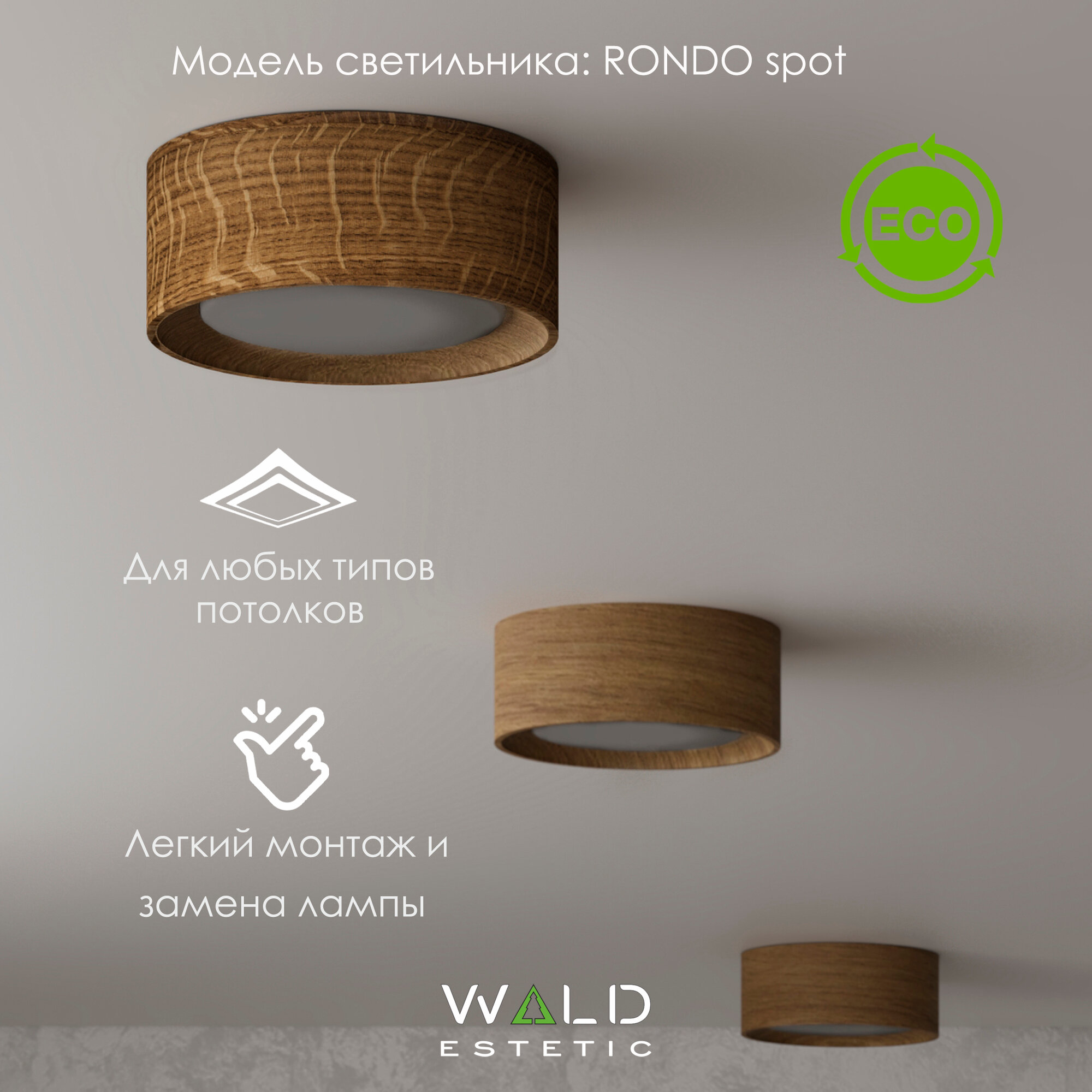 Светильник потолочный из дерева светодиодный Rondo spot 4 шт. комплект интересное: