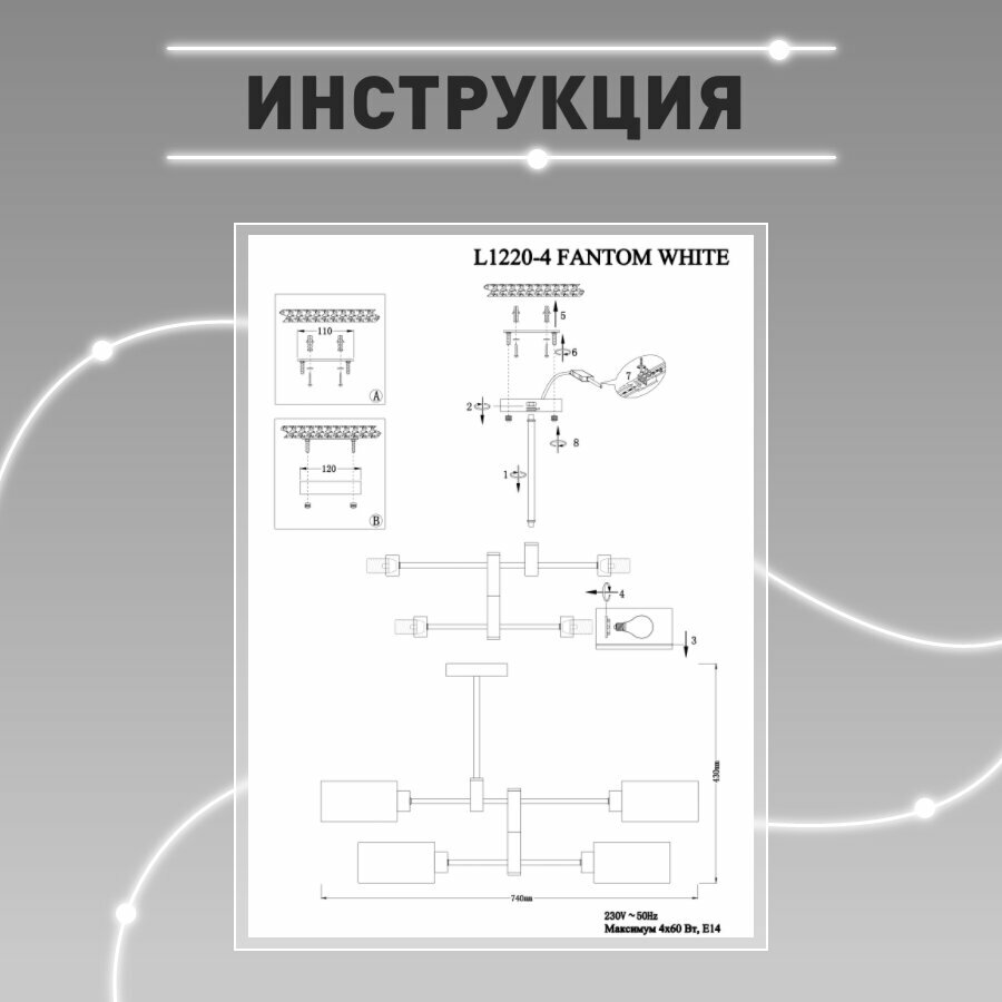 Люстра потолочная Lamplandia L1220-4 FANTOM WHITE, Е14*4 макс 60Вт интересное: