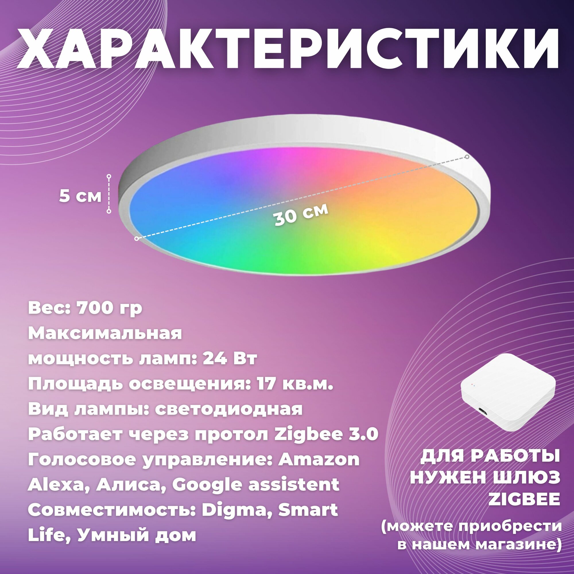 Умный высококачественный RGB светильник, с пультом, люстра Zigbee (нужен шлюз Zigbee), 24 W Яндекс Алиса, Tuya Original интересное: