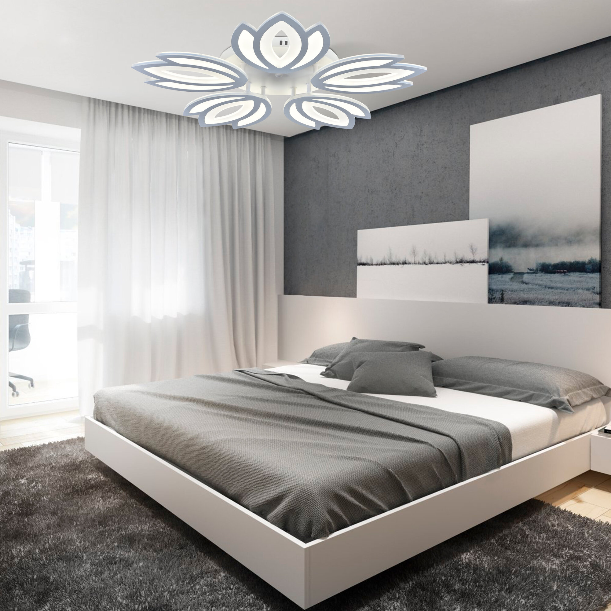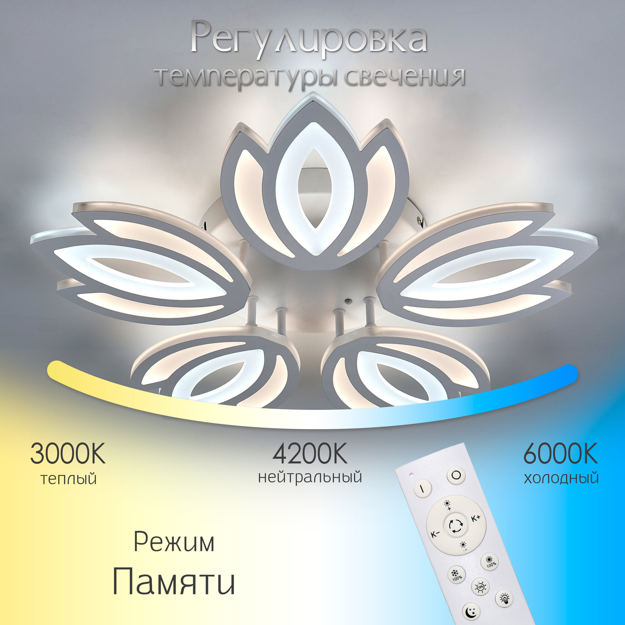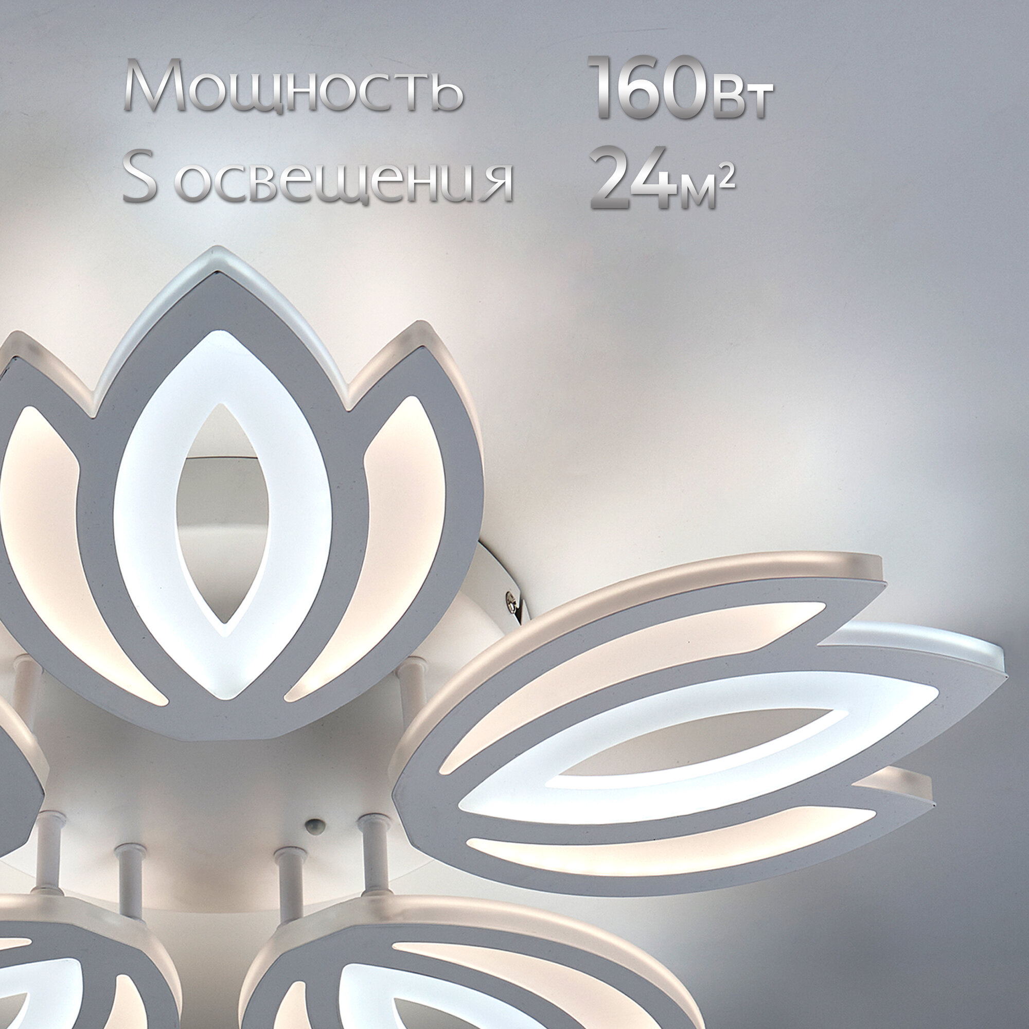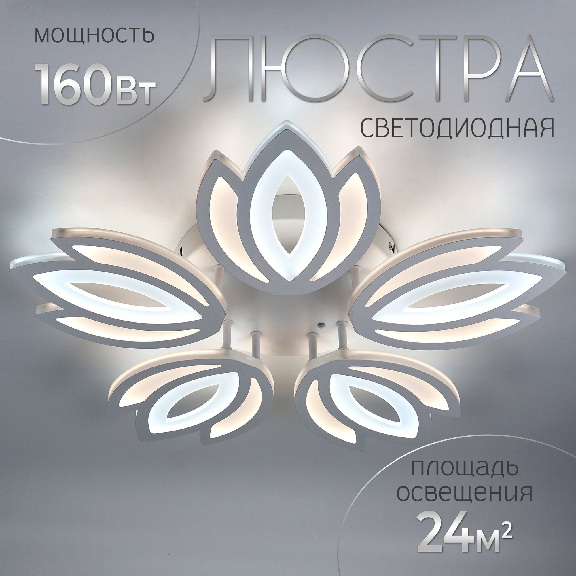 Люстра с пультом светодиодная потолочная 176W, 8 ламп, цветок, большая, белая, LEDCITY