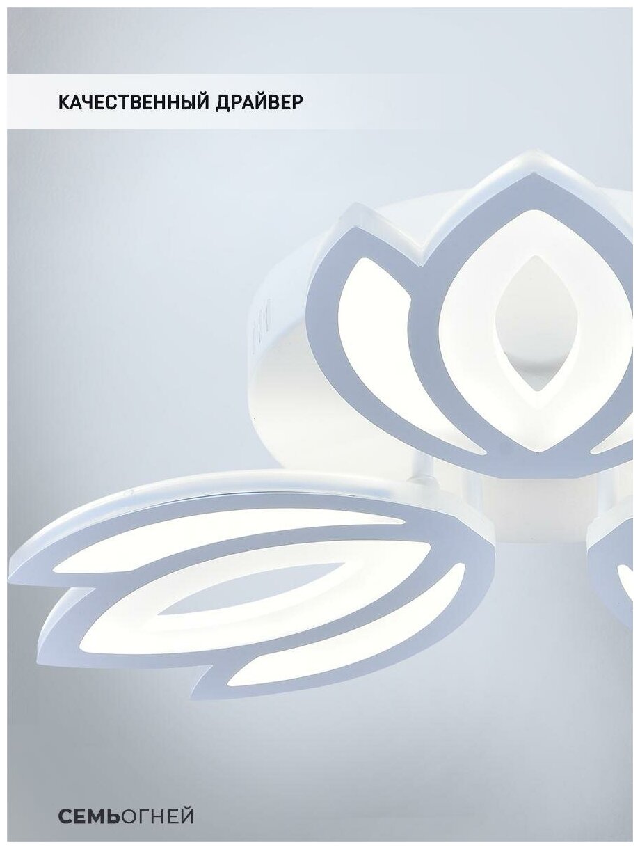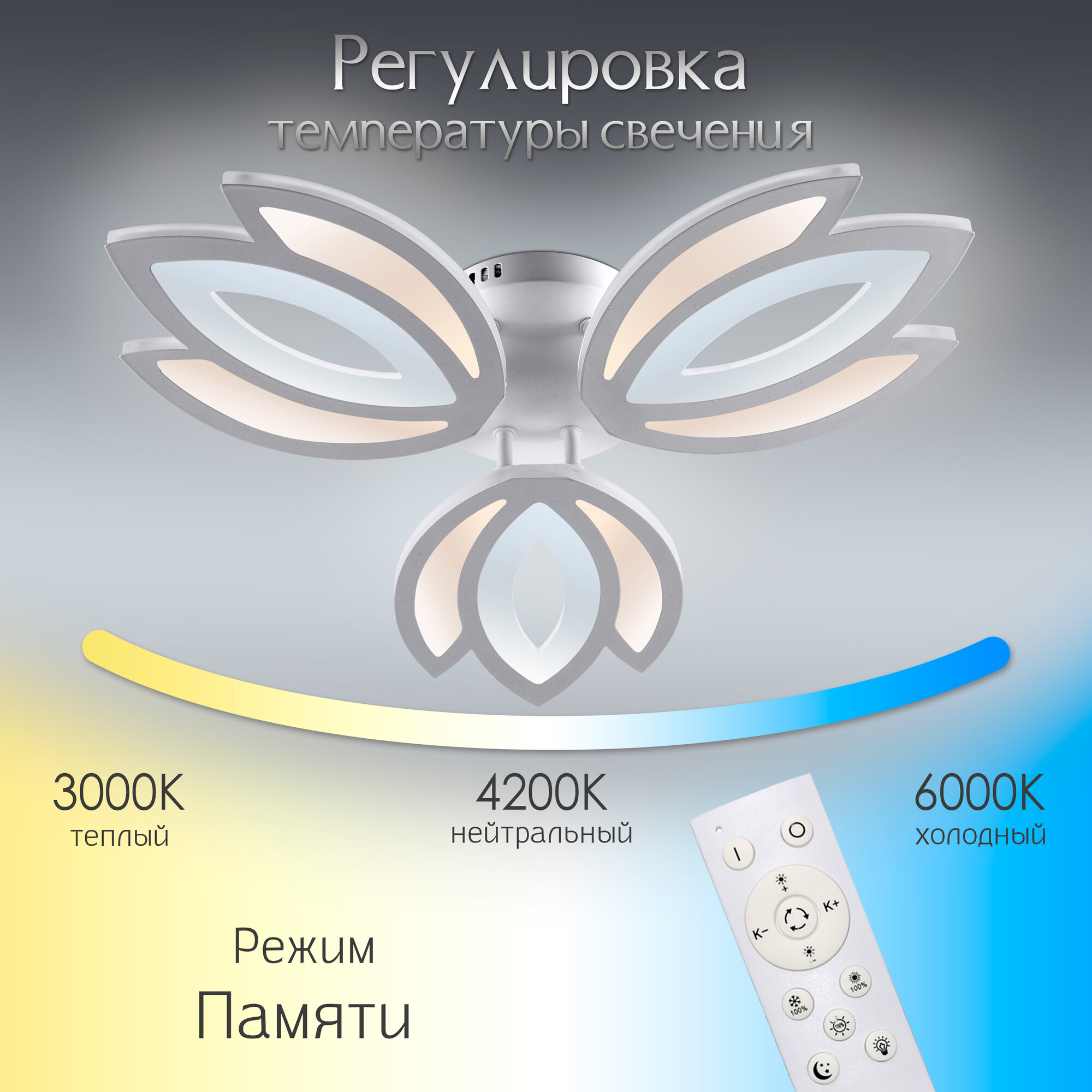 Люстра с пультом светодиодная потолочная 176W, 8 ламп, цветок, большая, белая, LEDCITY