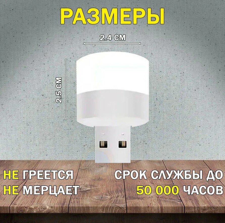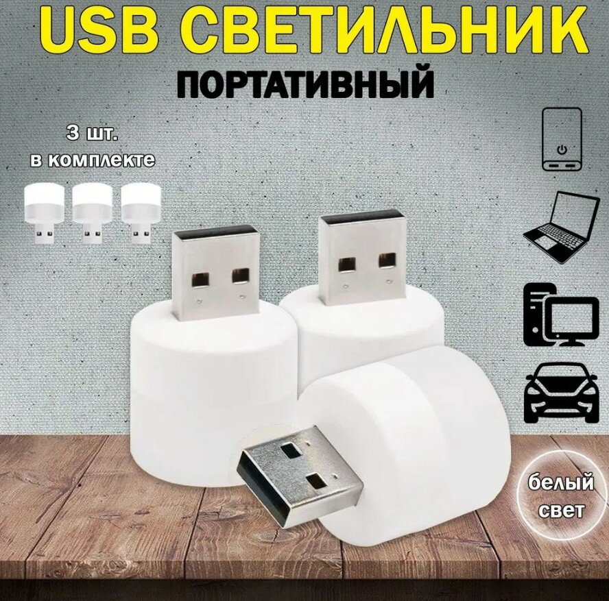 Купить USB светильник 3D, декоративный. LED лампочка, белая. мини в комплекте 3 штуки