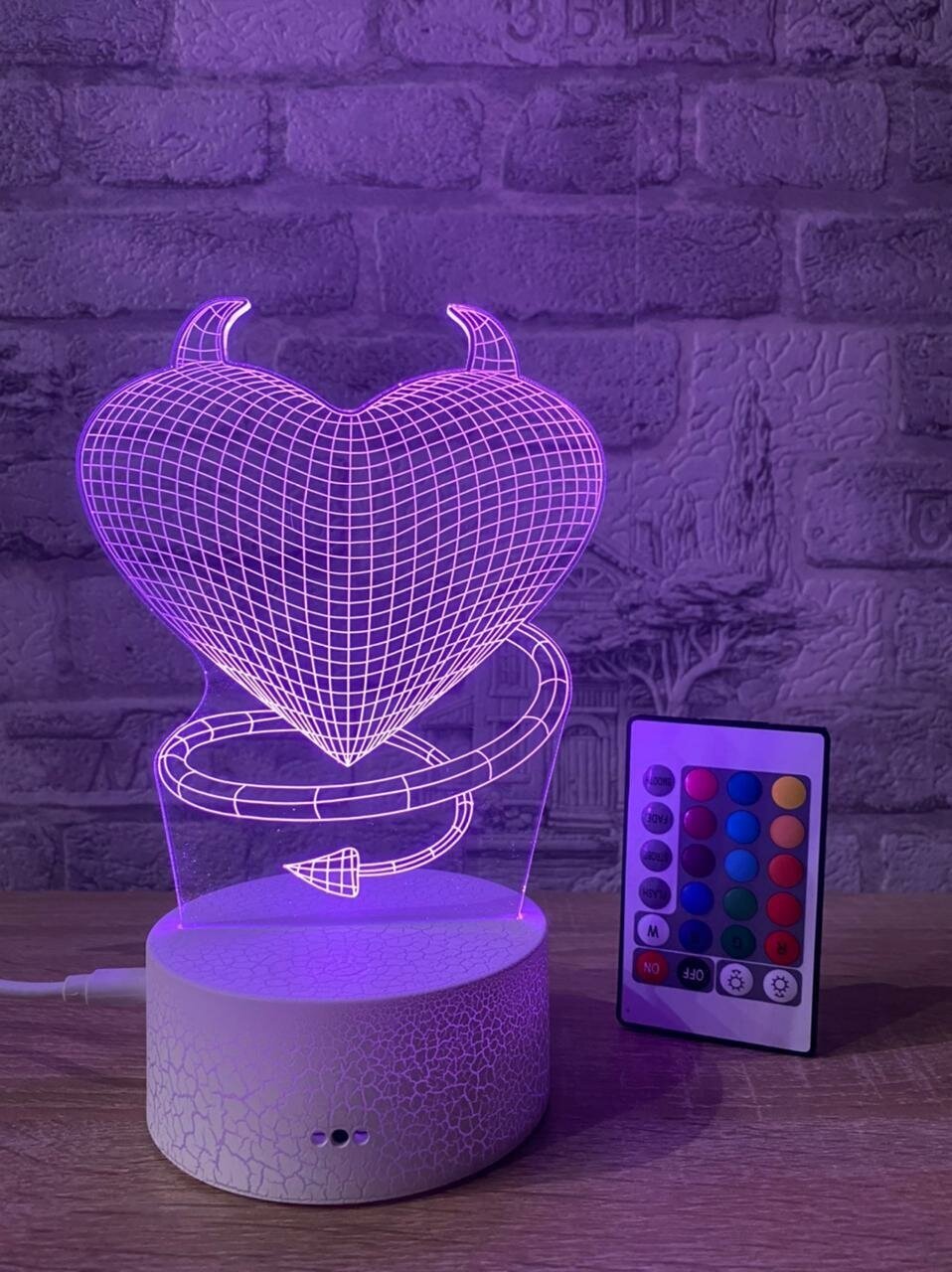 Купить 3D Светильник сердечко ..с пультом