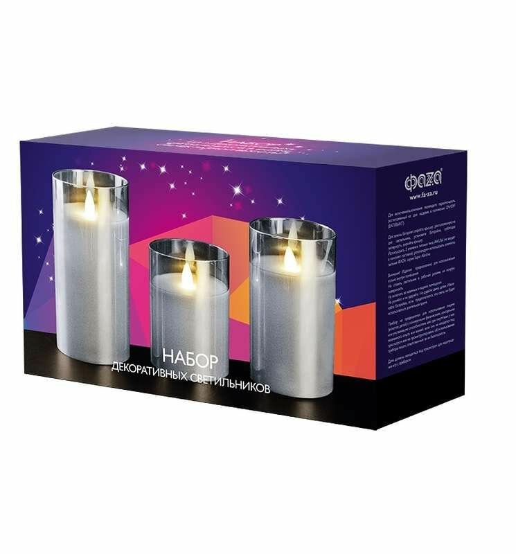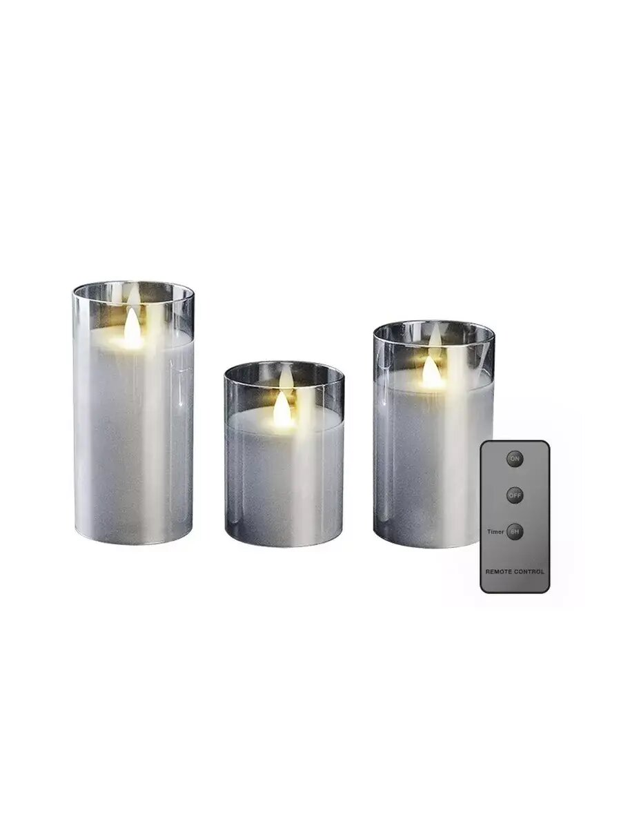 Подарочный набор из 3-х светодиодных восковых LED свечей в стекле ФАZА (10 см + 12.5 см + 15 см) с пультом ДУ CL7-SET3-sr (компл. 3-х свечей, серебро) интересное: