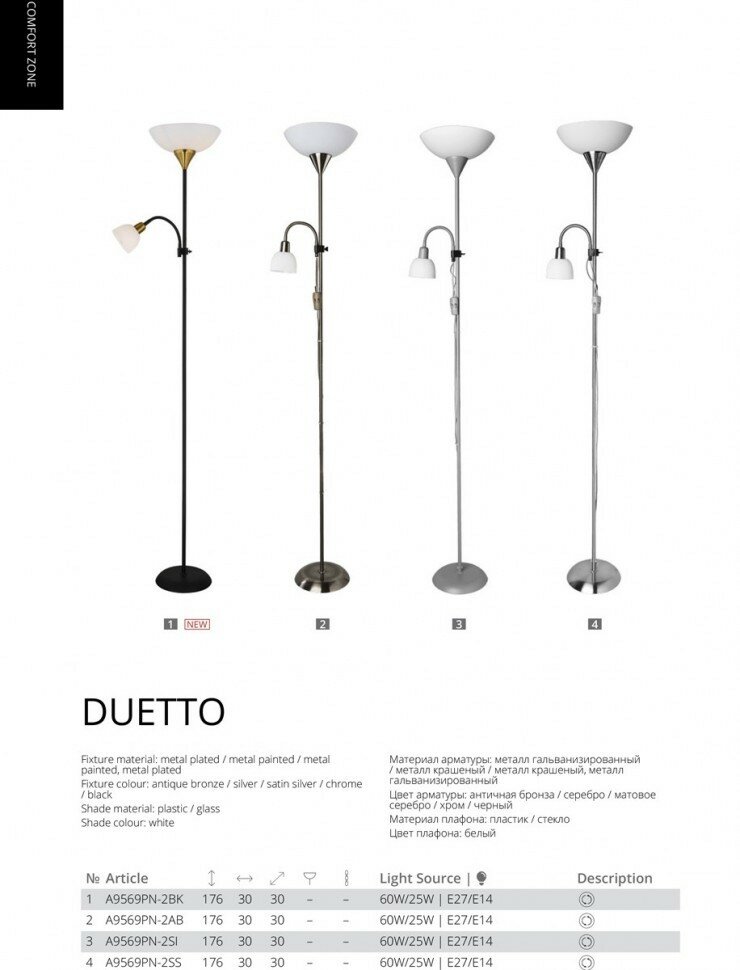 Торшер Arte Lamp DUETTO A9569PN-2AB
