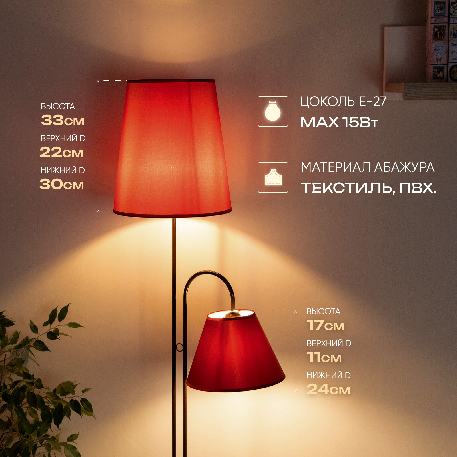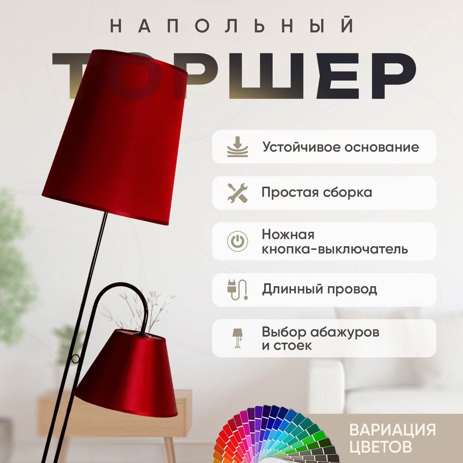 Торшер, Светильник напольный. Основание цвет: Коричневый. Абажур: Красный. AN1063-BR-R33-R17. интересное:
