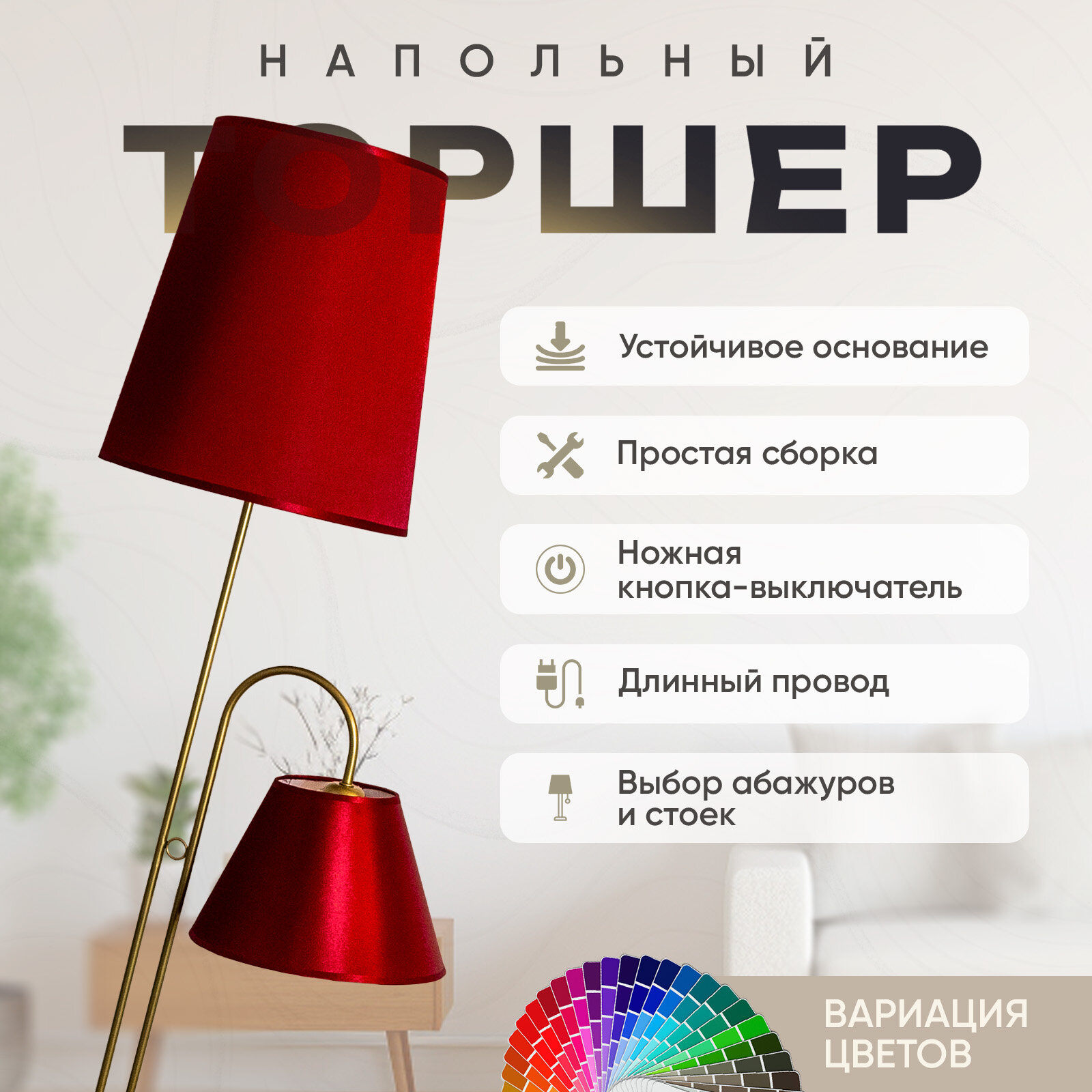 Торшер, Светильник напольный. Основание цвет: Золото. Абажур: Красный. AN1063-G-R33-R17. интересное: