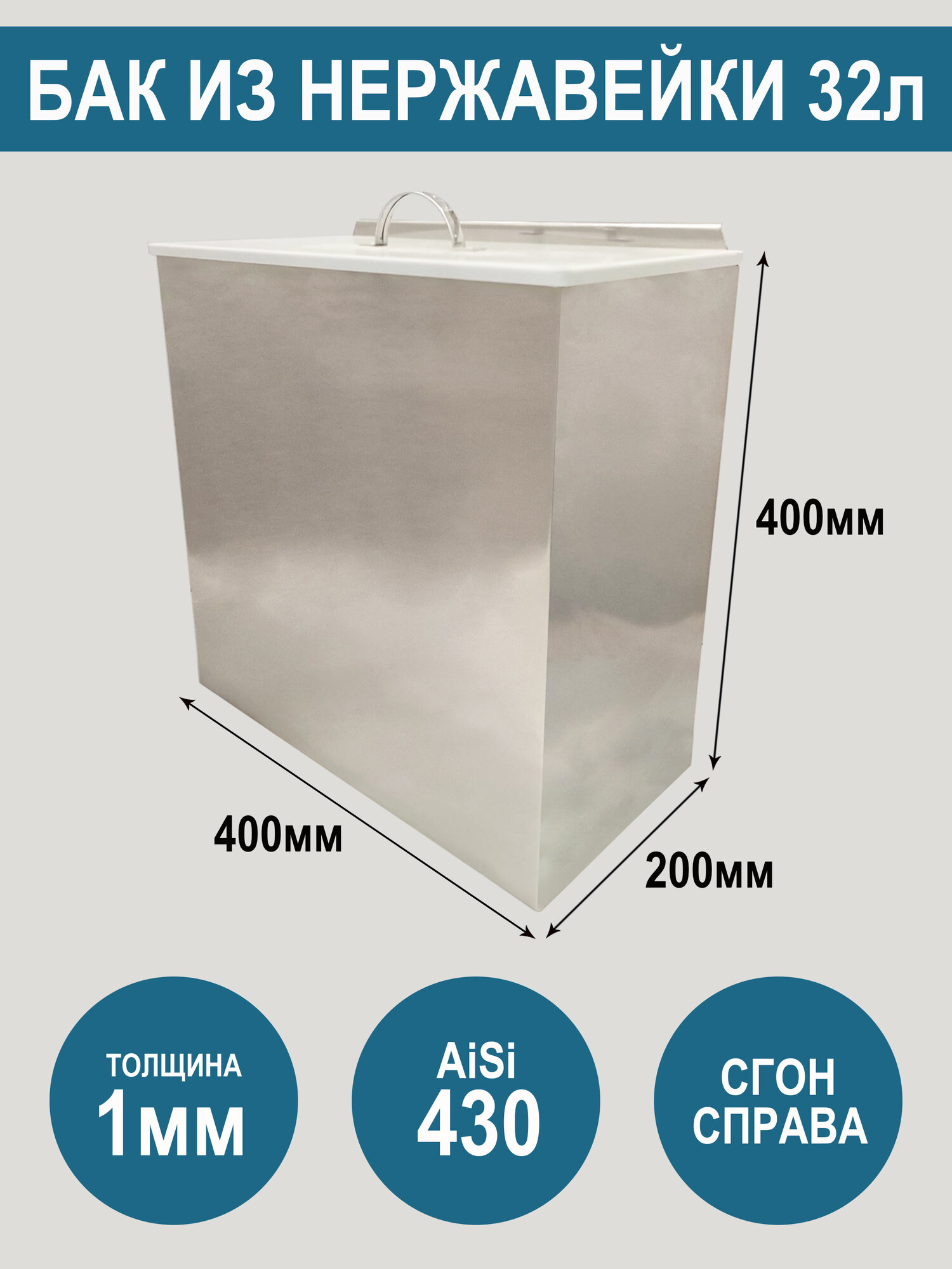 Бак из нержавеющей стали AiSi430 с крышкой, объем 32 литра, сгон справа интересное: