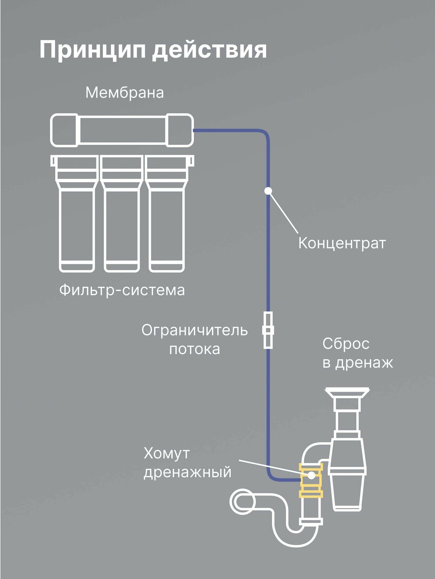 Дренажный хомут для фильтр систем с соединением под трубку 1/4", обратный осмос, цанга, сантехническое соединие интересное:
