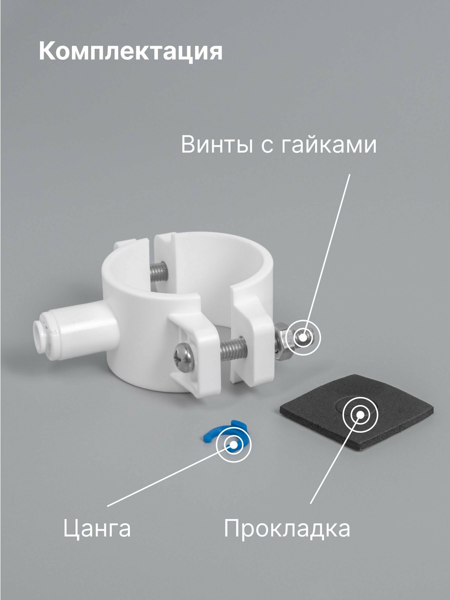 Купить Дренажный хомут для фильтр систем с соединением под трубку 1/4", обратный осмос, цанга, сантехническое соединие