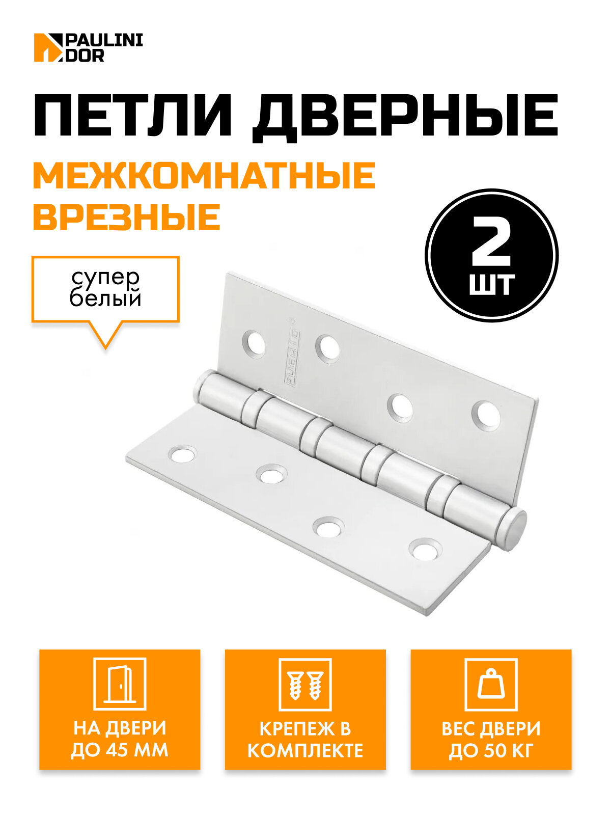 Петли дверные 2ШТ Puerto IN100-4S для межкомнатных дверей, Супер белый интересное: