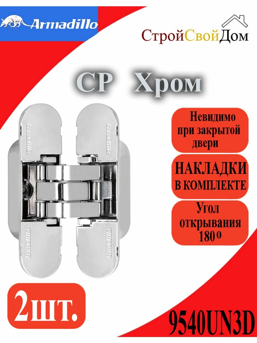 Комплект 2 шт. - Петля Armadillo (Армадилло) скрытой установки с 3D-регулировкой 9540UN3D CP Хром