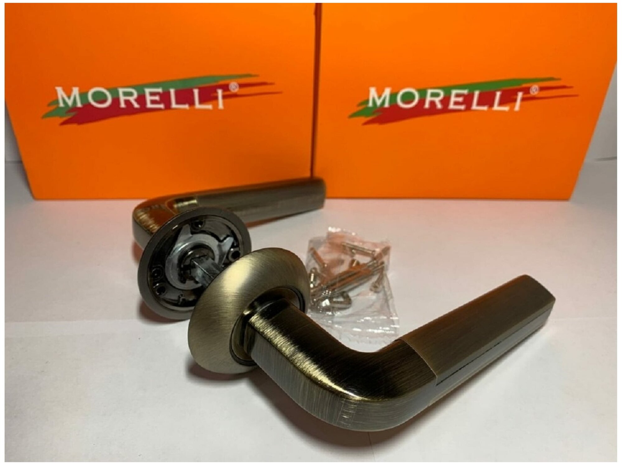 Ручка дверная Morelli MH-14 MAB/AB матовая бронза/античная бронза, ручки для межкомнатных дверей на круглой накладке комплект, фурнитура
