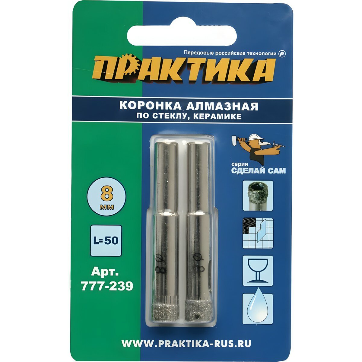 Коронка алмазная ПРАКТИКА ".Сделай сам" по стеклу и керамике 8мм (2шт) блистер (777-239) интересное: