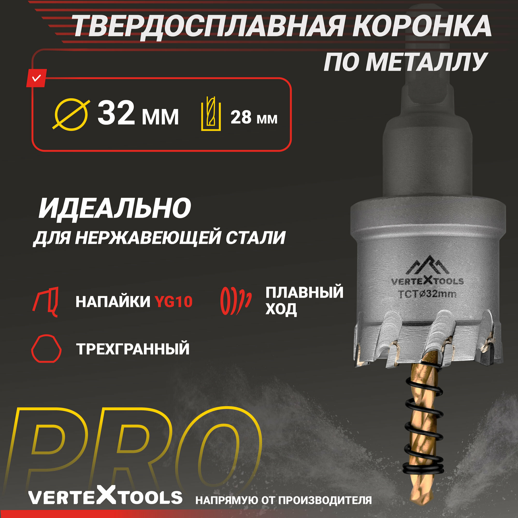 Коронка по металлу твердосплавная с центрирующим сверлом vertextools 25мм