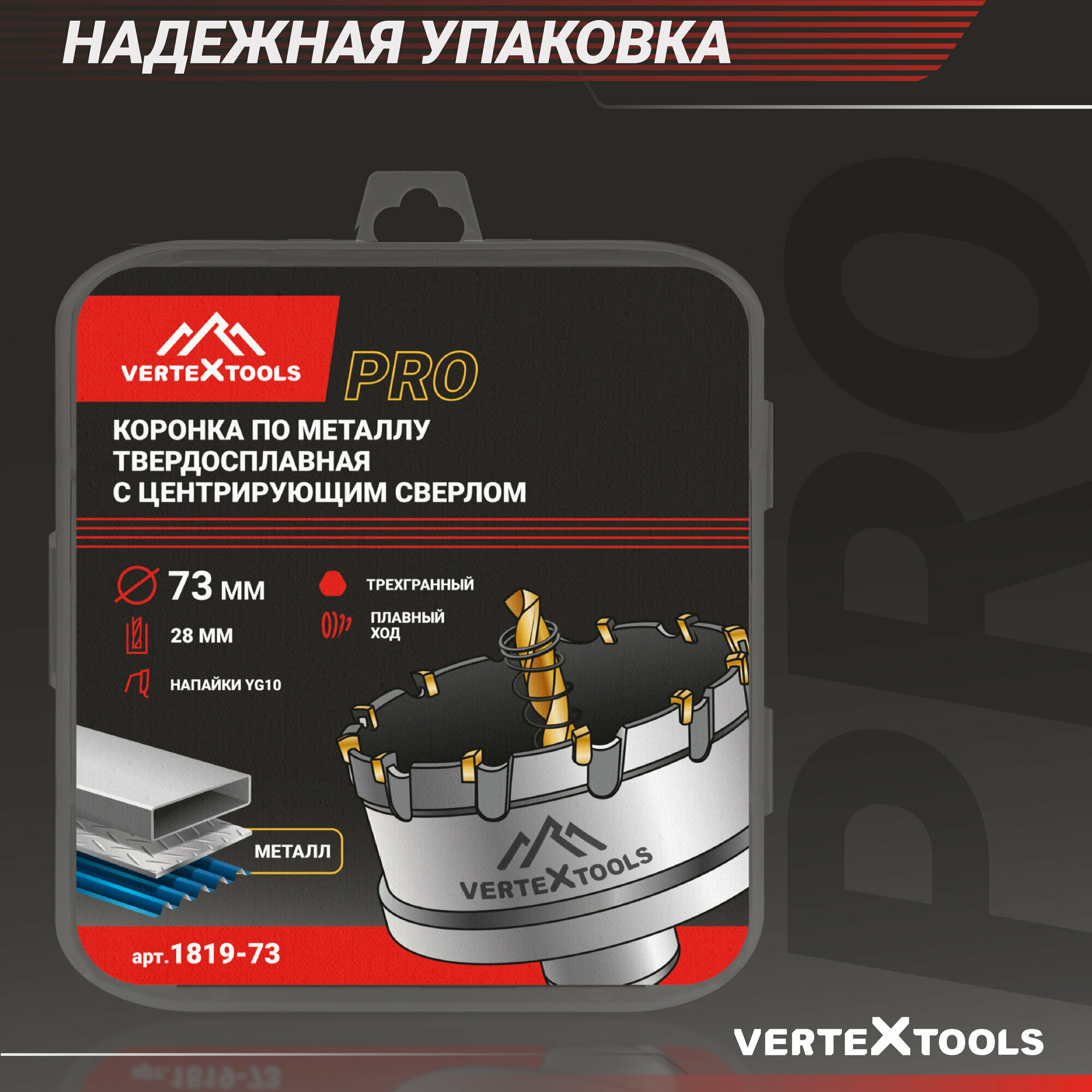 Коронка по металлу твердосплавная с центрирующим сверлом vertextools 68мм