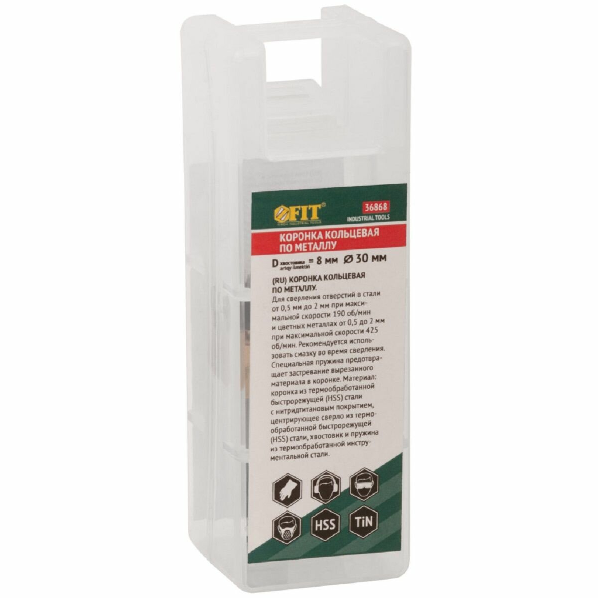 Коронка кольцевая по металлу 30 мм, HSS сталь, титановое покрытие FIT 36868
