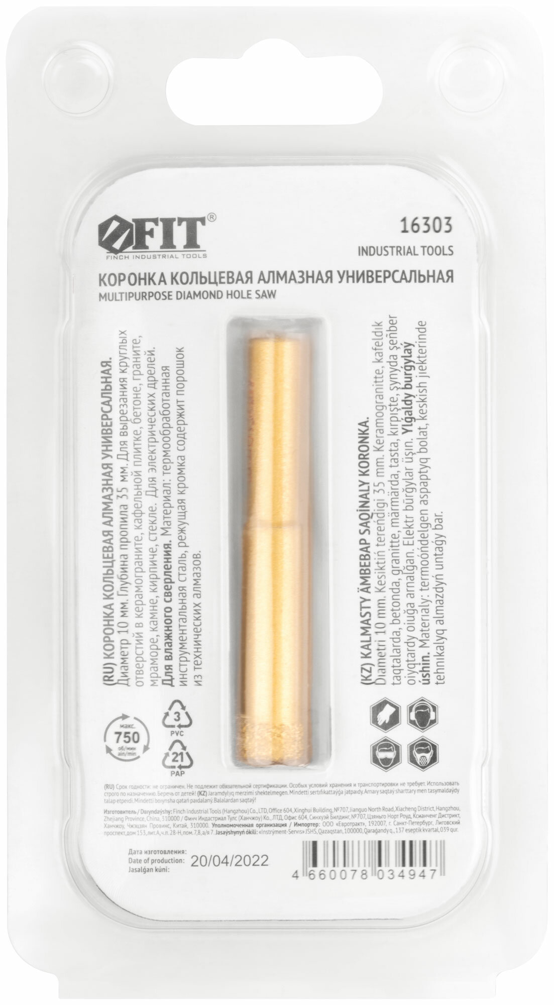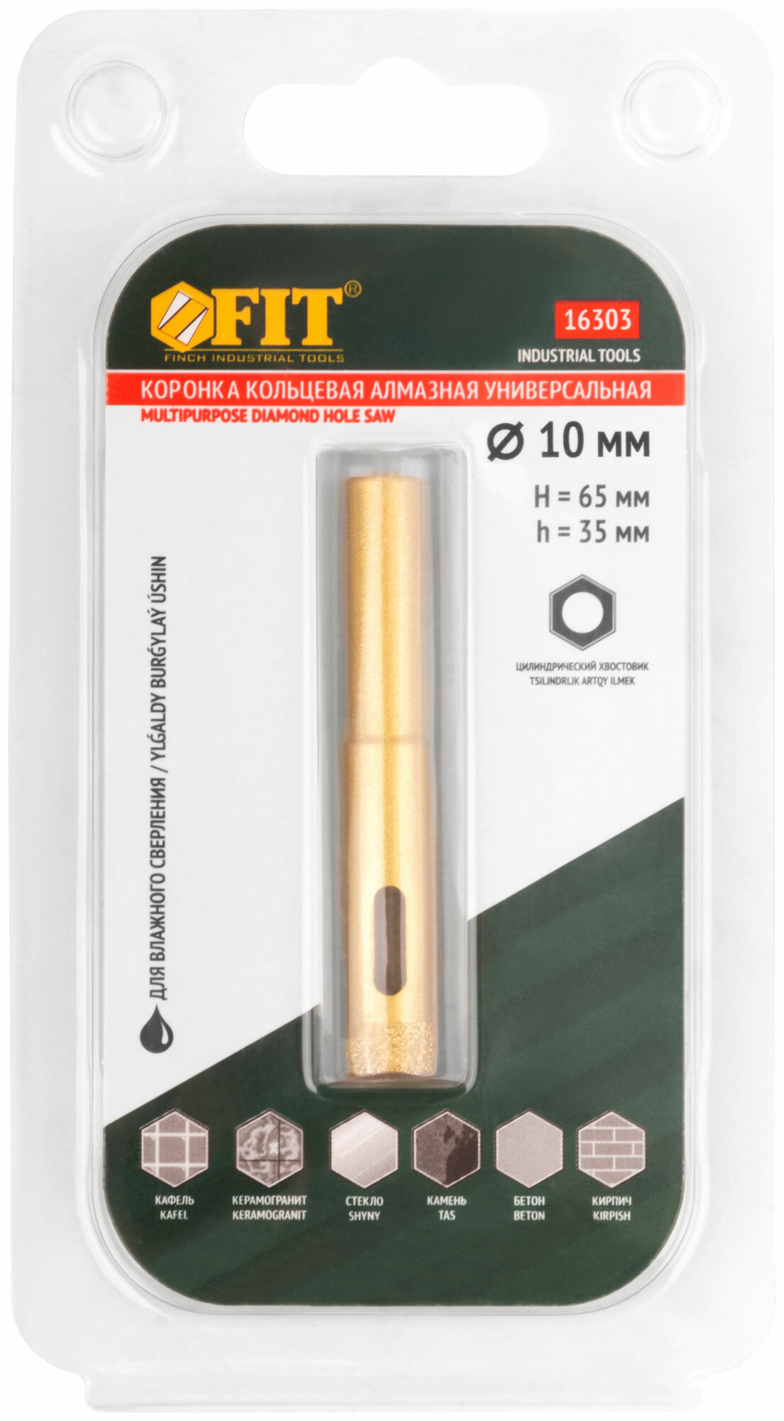 Коронка алмазная кольцевая 10 мм FIT для стекла и кафеля