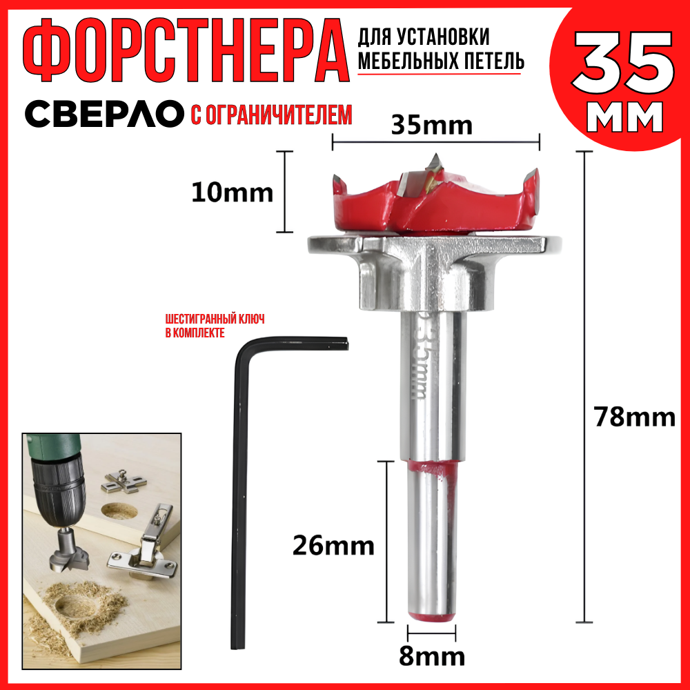 Сверло форстнера с ограничителем/для установки мебельных петель/35 мм интересное: