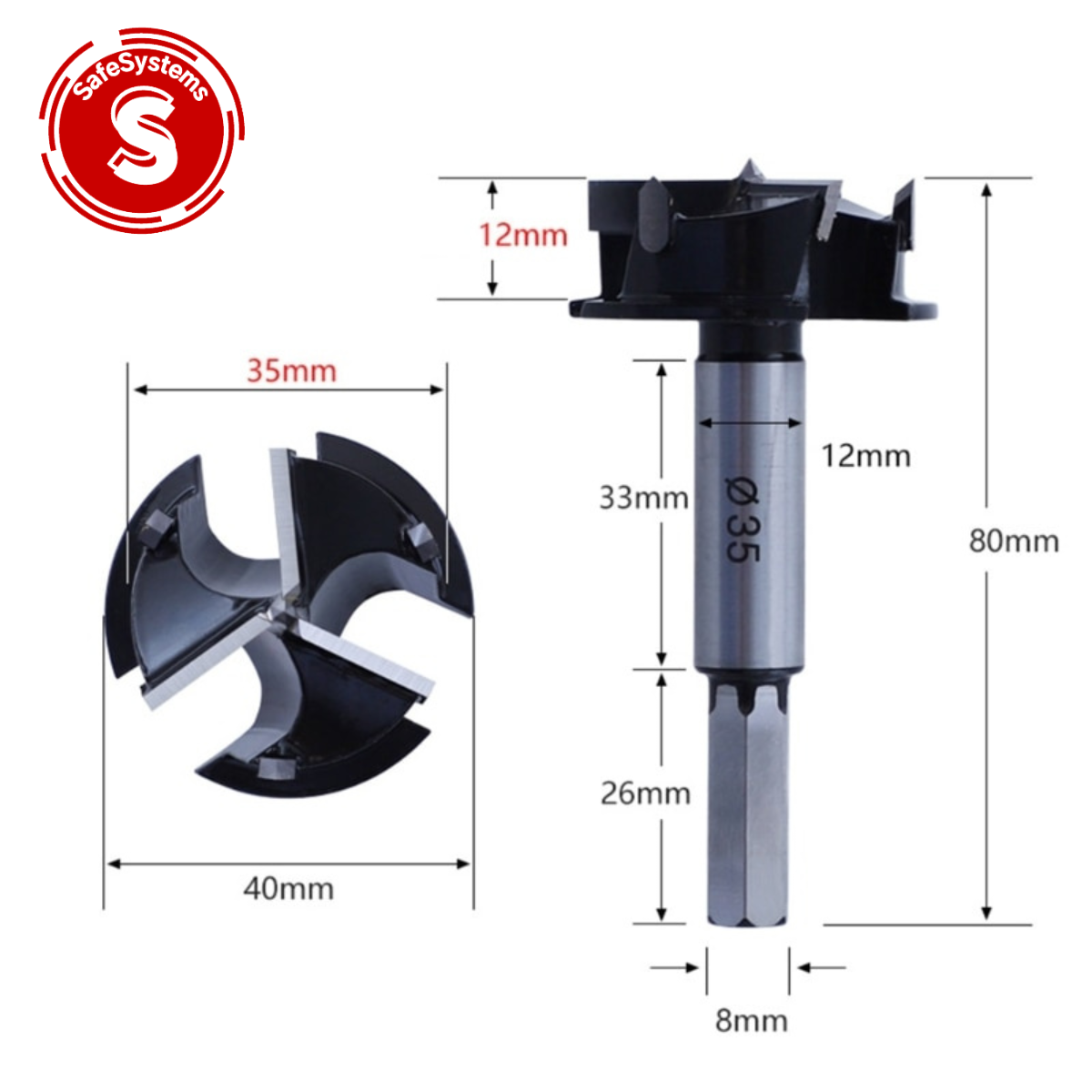 Купить Сверло Форстнера с 3 лезвиями и ограничителем глубины, диаметр 35 мм, хвостовик 8 мм