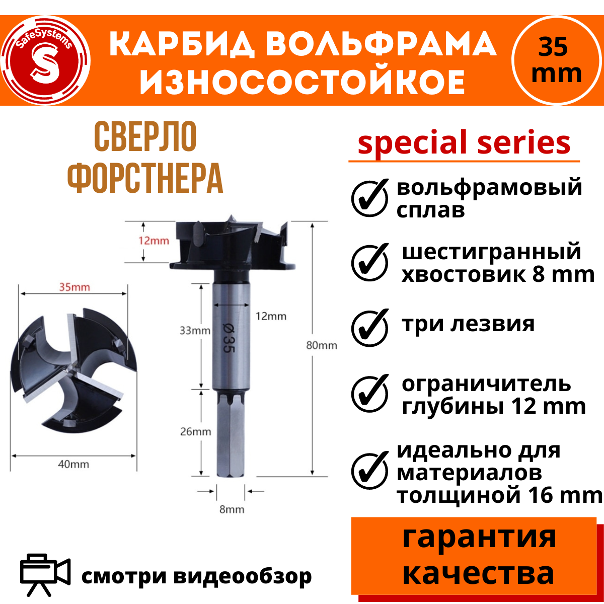 Сверло Форстнера с 3 лезвиями и ограничителем глубины, диаметр 35 мм, хвостовик 8 мм интересное: