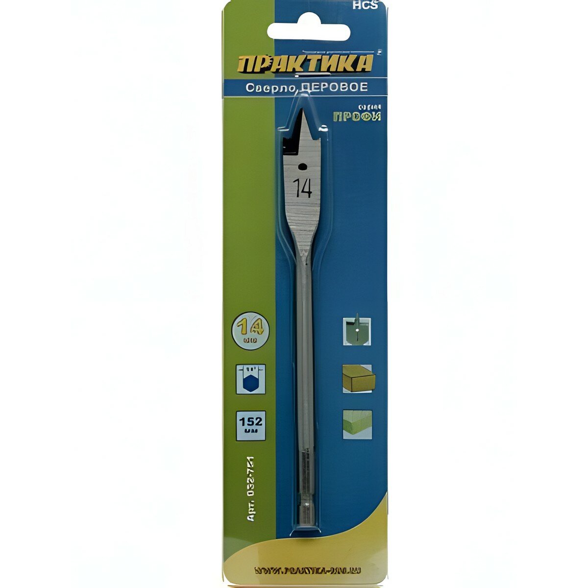 Сверло по дереву перовое ПРАКТИКА 14 х 152 мм (1шт.), шестигранник