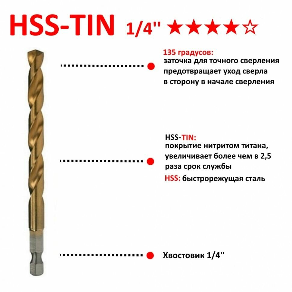 | Материал сверла | HSS-G TiN |