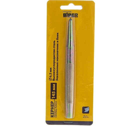 | Подробная комплектация | Технические характеристики кернера Biber 85422 тов-095124 Тип инструмента кернер Длина 145 мм |