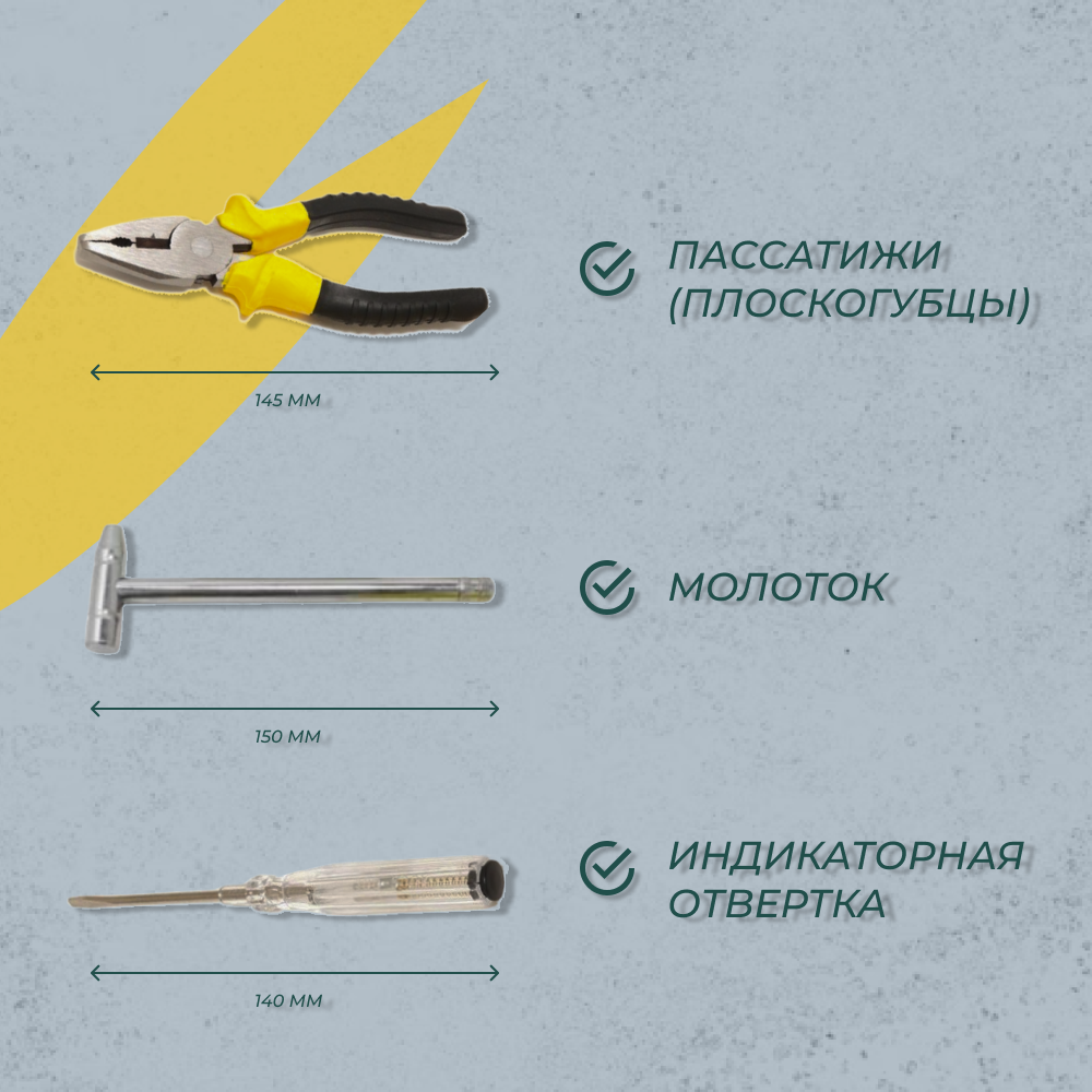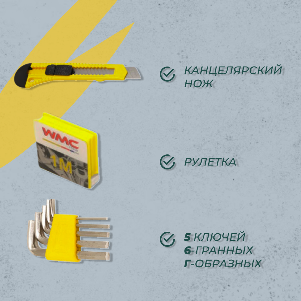 | Инструменты в комплекте | ключи имбусовые (шестигранные) / молоток / отвёртки / пассатижи / рукоять для бит |