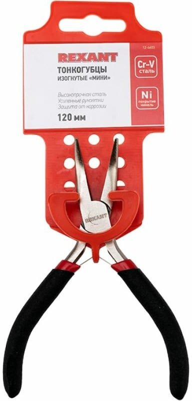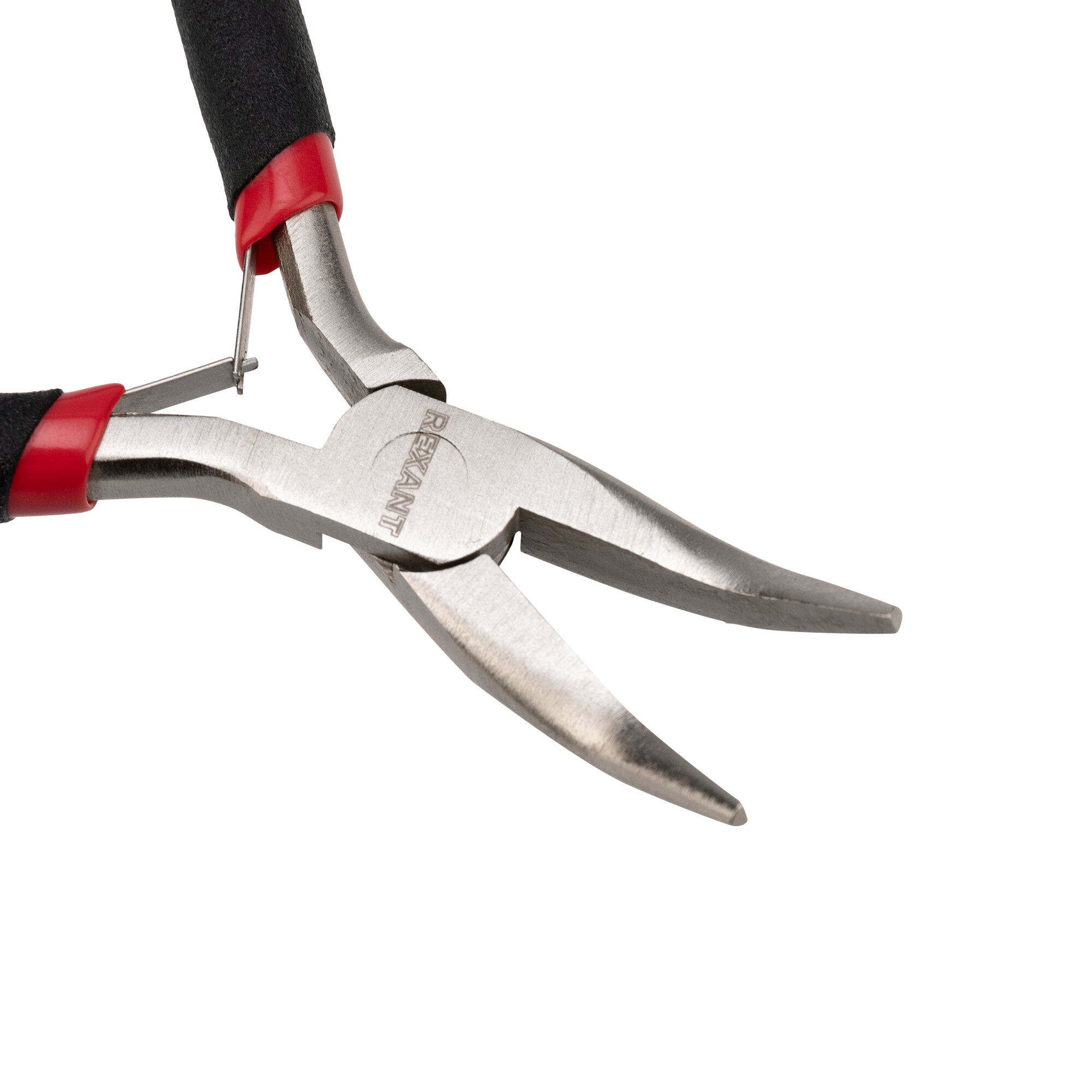 Никелированные изогнутые мини-тонкогубцы с авторазжимом губок и обливными рукоятками 120 мм REXANT