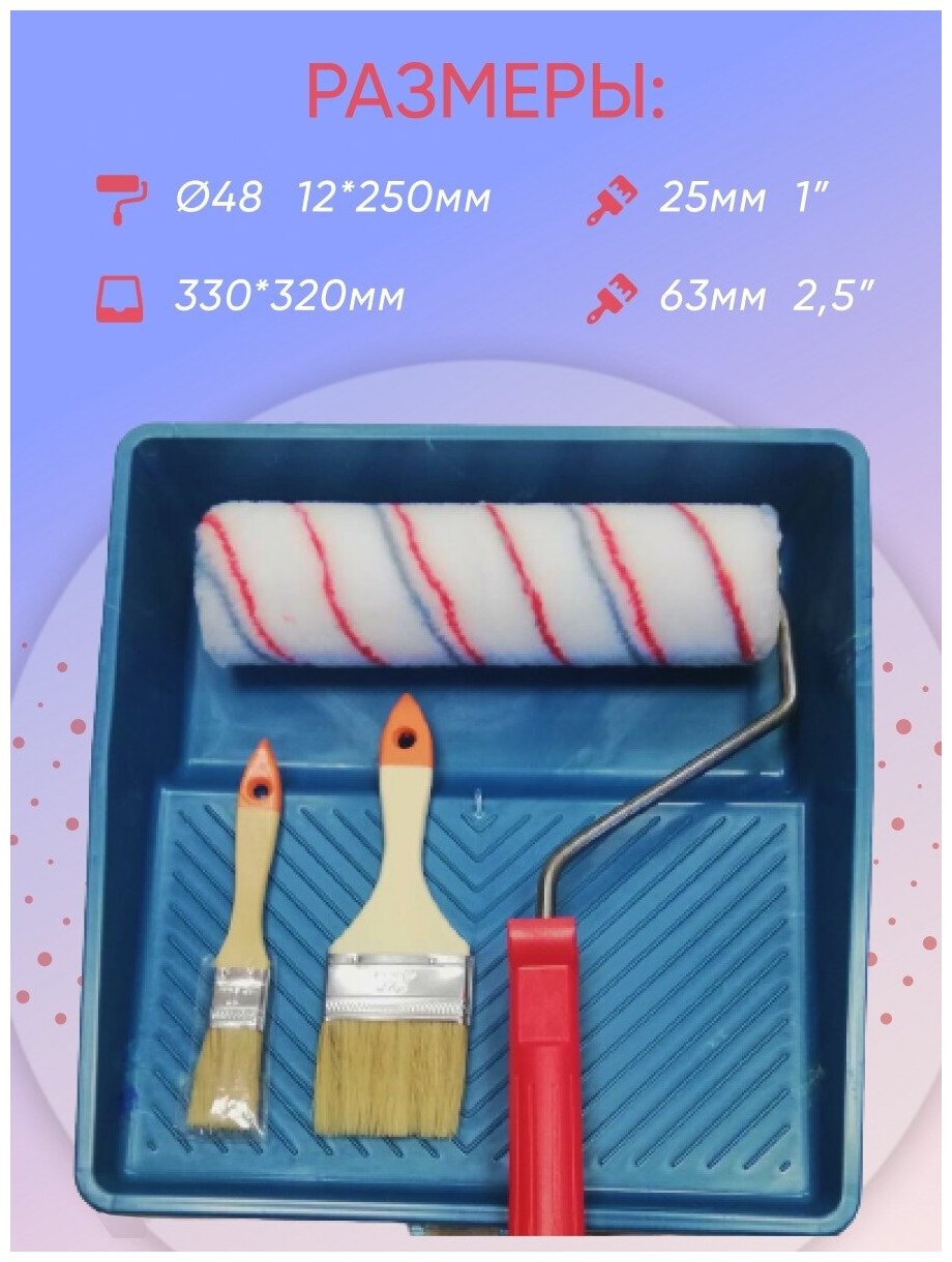 Набор Малярный, Валик 245 мм, Ванночка 330*320 мм, Кисточки 25, 63 мм интересное: