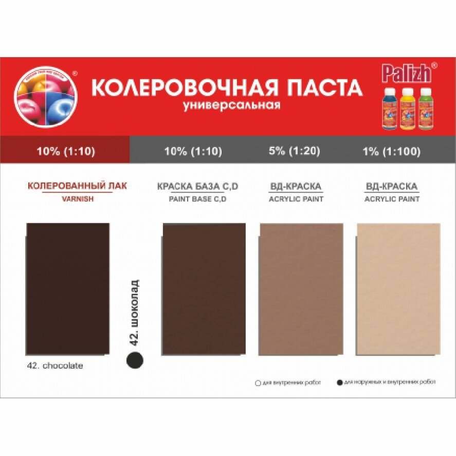 Паста колеровочная универсальная STANDART PALIZH, колер для краски, эмали, лака (150 г), шоколад №42 интересное: