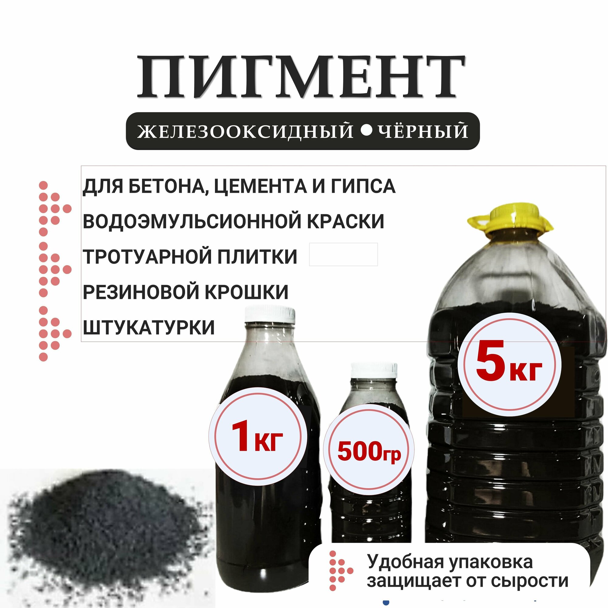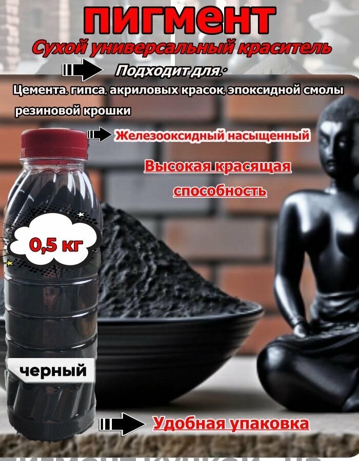 Пигмент черный для бетона, гипса, краски и кирпича 500 гр универсальный сухой краситель интересное: