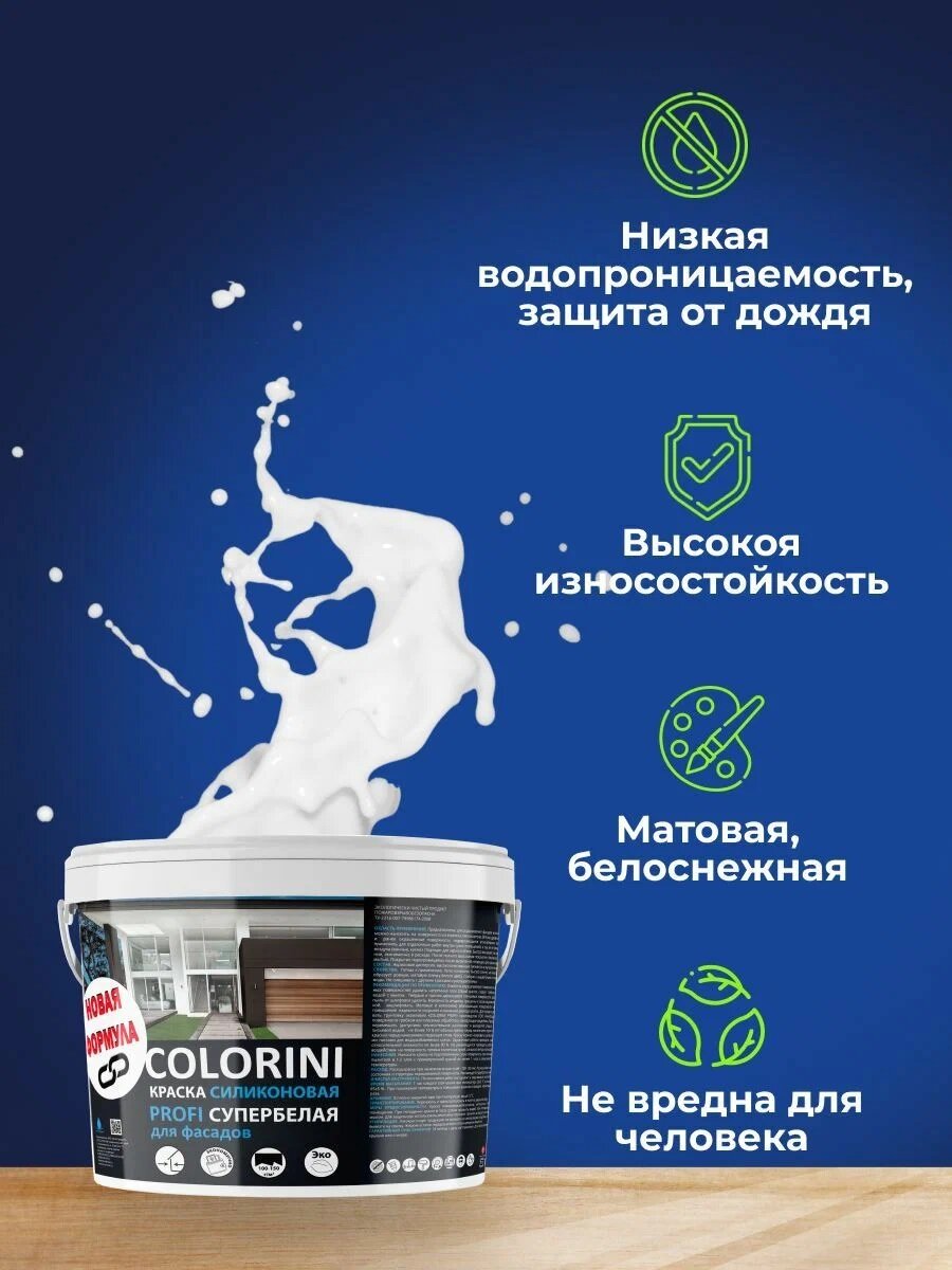 Краска фасадная силиконовая супербелая 12,6 кг COLORINI PROFI интересное: