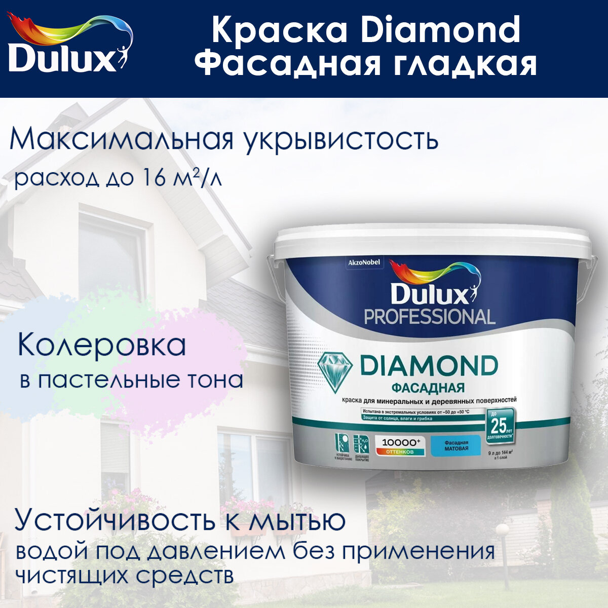 Фасадная краска Dulux Diamond база BW 9 л интересное: