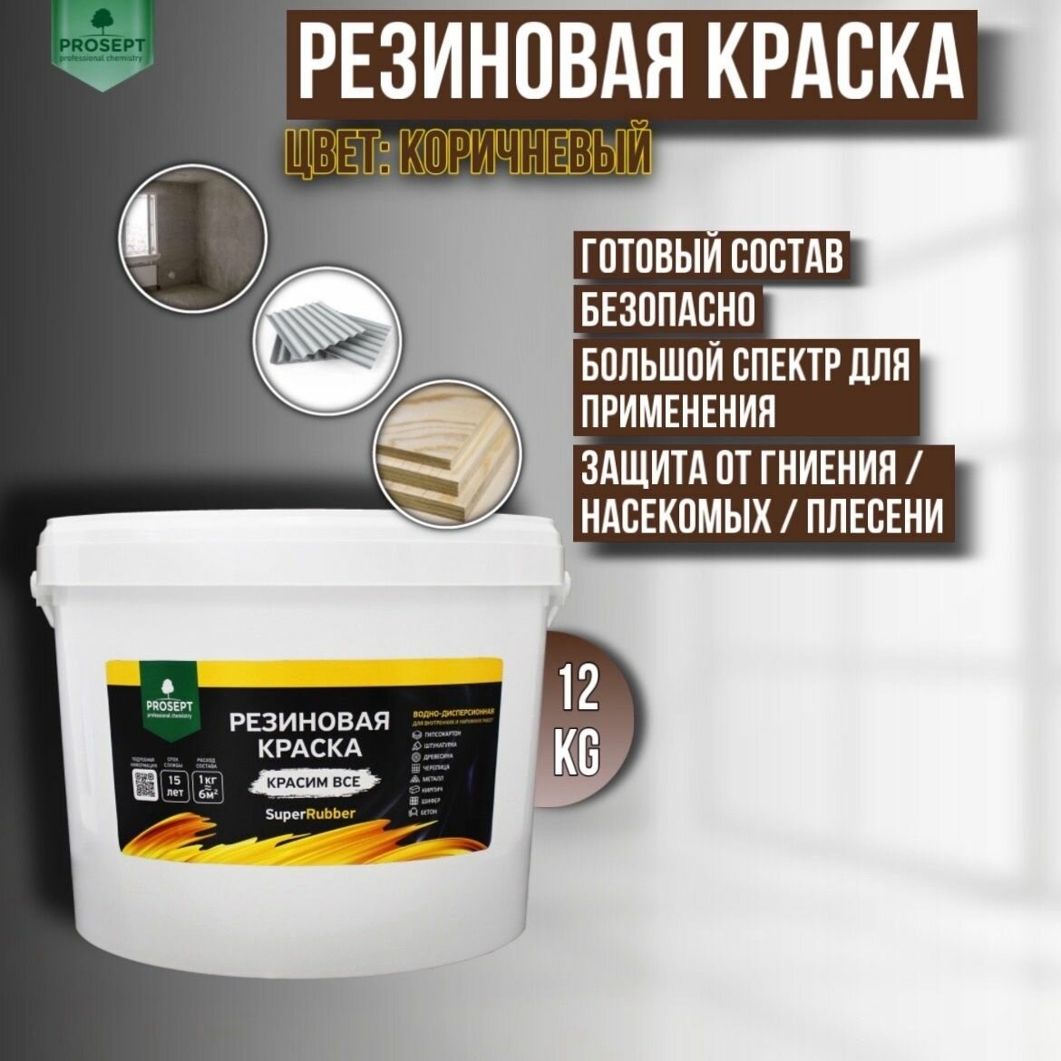 Краска резиновая Prosept SuperRubber (12кг) коричневый RAL8017