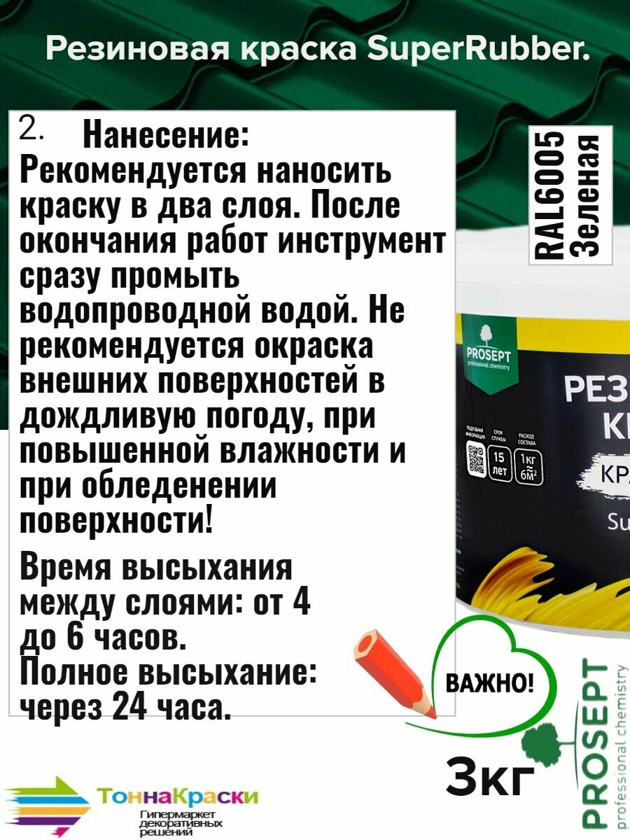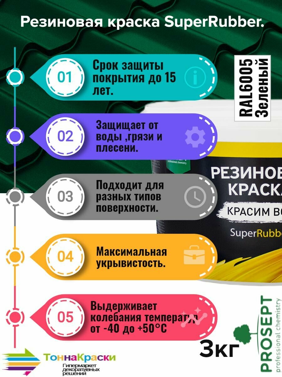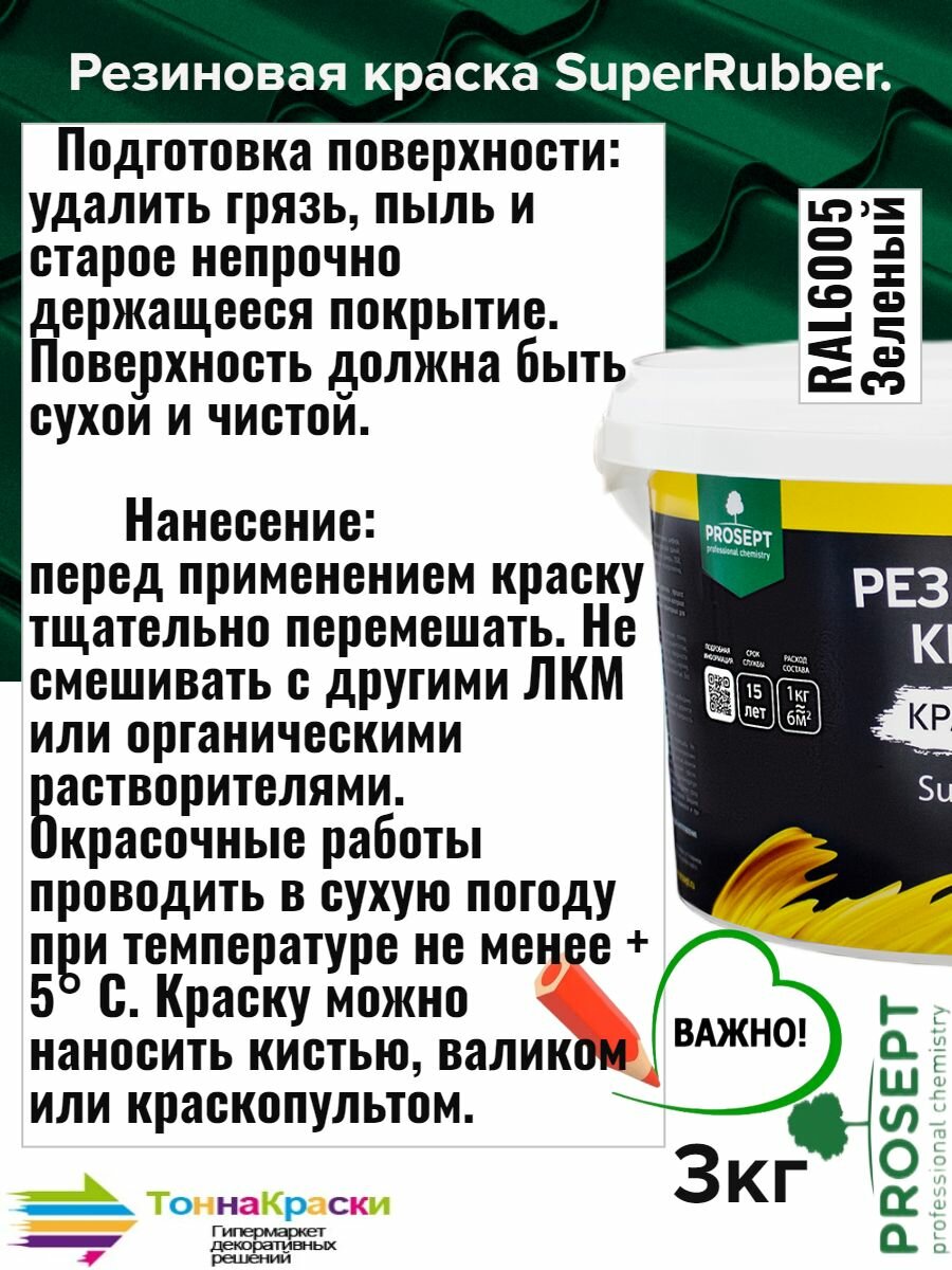 Краска резиновая PROSEPT SuperRubber зеленый мох Ral 6005 3 кг + перчатки