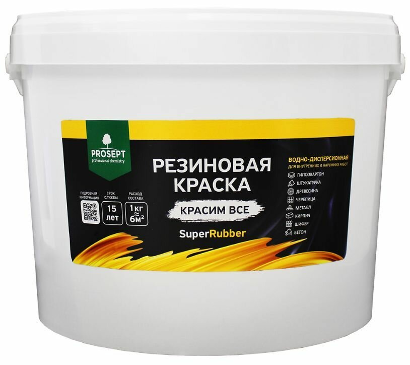 Краска резиновая Prosept SuperRubber (12кг) белый RAL9003
